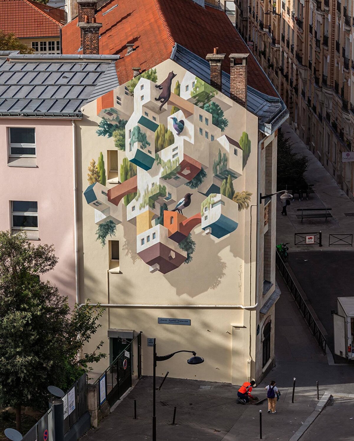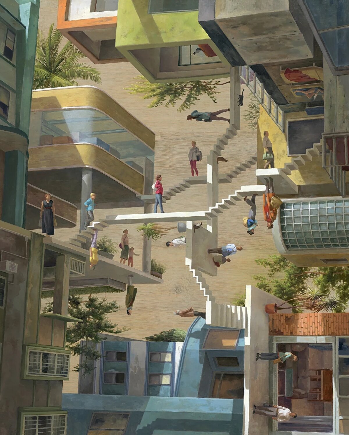 Cinta Vidal @cinta_vidal interprets architectural structures and scenes from everyday life through multiple perspectives. By playing with direction, scale and spatial perception, she reconstructs the relationship between individuals and structures. These compositions, which defy the laws of gravity, redefine space without being tied to a fixed viewpoint.