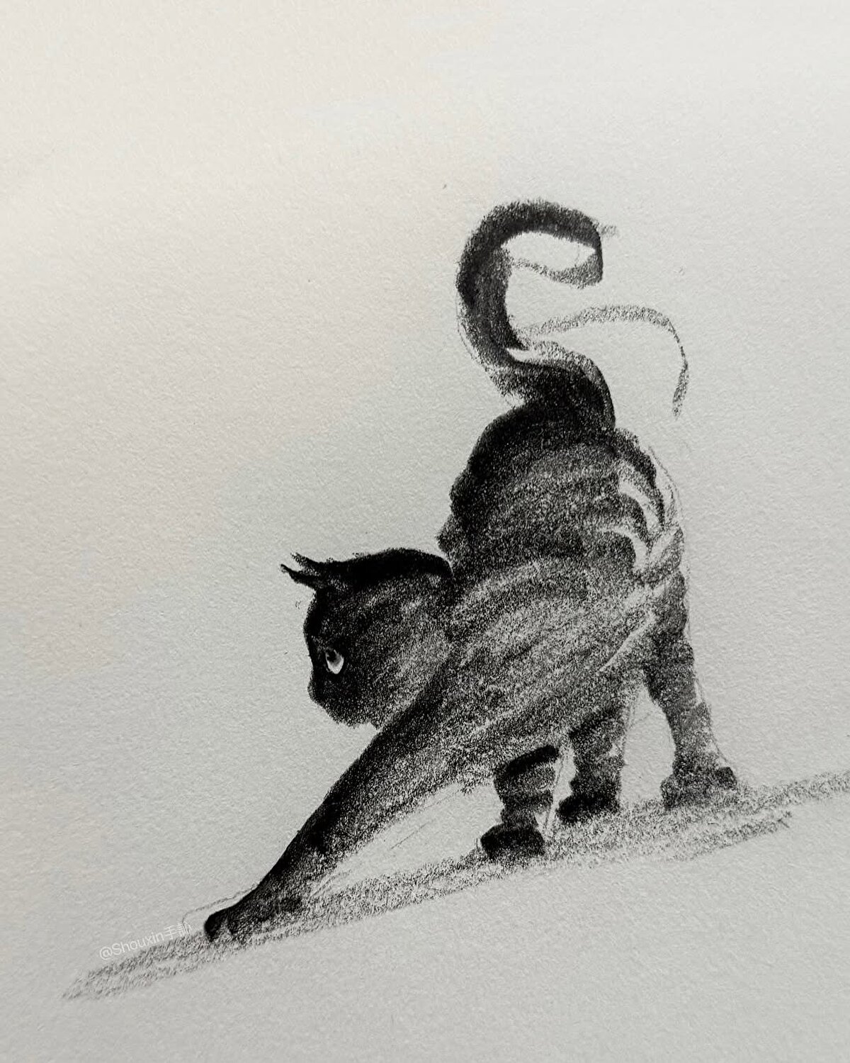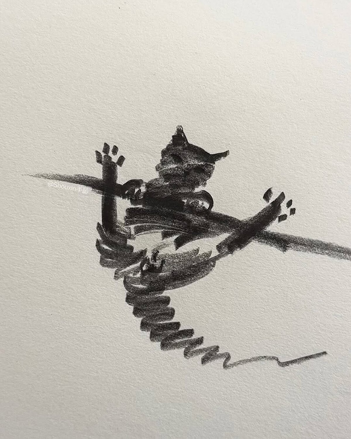 @shouxin13141'in çizimlerinde kediler zıplarken, oynarken ve gerinirken farklı hareket anlarıyla karşımıza çıkıyor. 🐈
