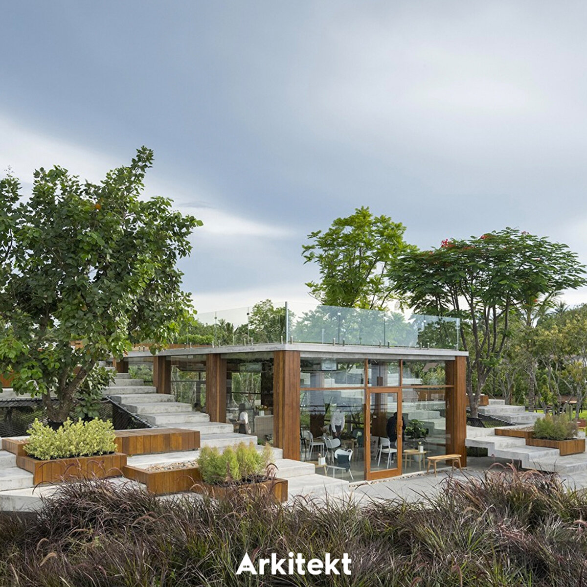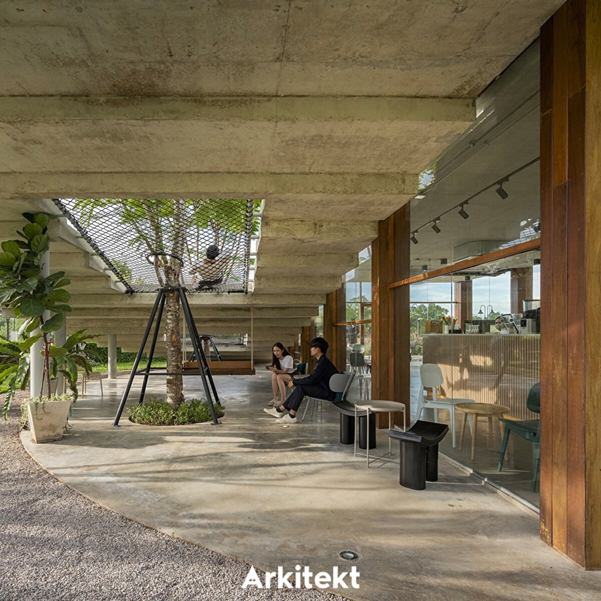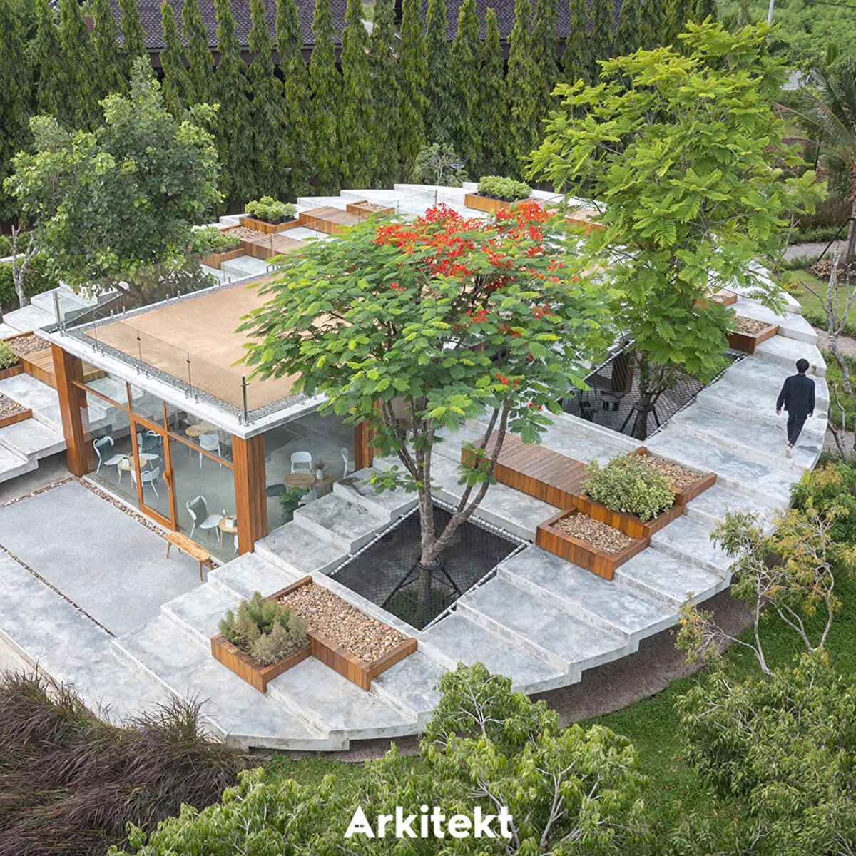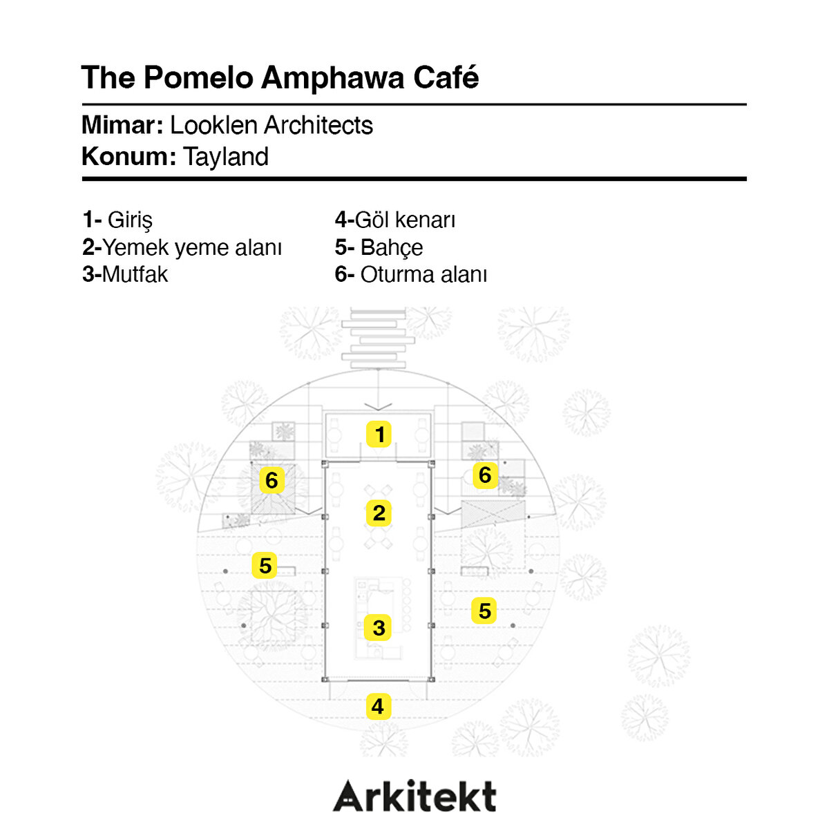 5 binadan oluşan Pomelo Amphawa ana planının bir parçası olan bu kafe, @looklen_architects tarafından tasarlanıyor.