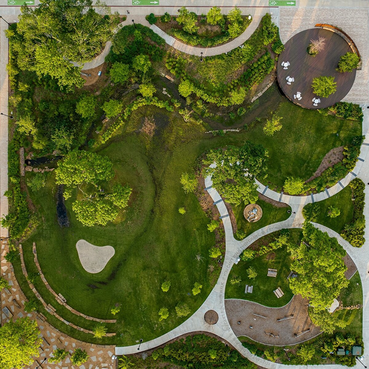 The square draws attention with its simple yet meaningful landscaping. Wide walkways and seating areas welcome visitors and encourage people to spend time here. Dr. King's words offer a silent narrative through the floor tiles integrated into the space. These details make the square not only a physical space, but also a place of reflection and remembrance.