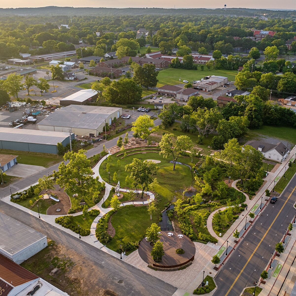 Conway, Arkansas'ta hayata geçirilen Martin Luther King Jr. Meydanı, sadece bir anma alanı değil; aynı zamanda toplumu bir araya getiren, açık ve davetkâr bir kamusal mekân olarak tasarlandı. Proje, 1960'lı yıllarda ayrımcılıkla mücadele eden siyah topluluğun önemli izler bıraktığı bir bölgede konumlanıyor ve geçmişin izlerini bugünün kamusal yaşamına taşıyor.