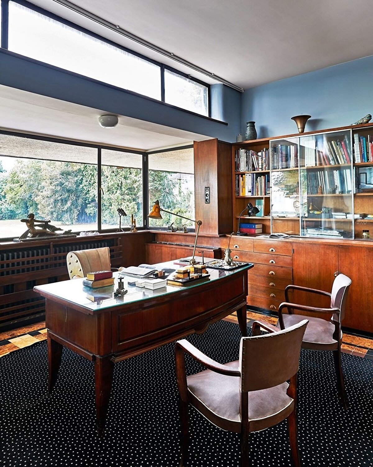 The reinforced concrete structural system and free-flowing floor plan evoke the influence of Le Corbusier in the interior. Rhythmic floor patterns, glass sphere staircase caps, and marbriette cladding highlight the attention to detail of the period. The villa, which showcases a holistic approach to architecture, interior design, and garden design, stands out as a local interpretation of international style.