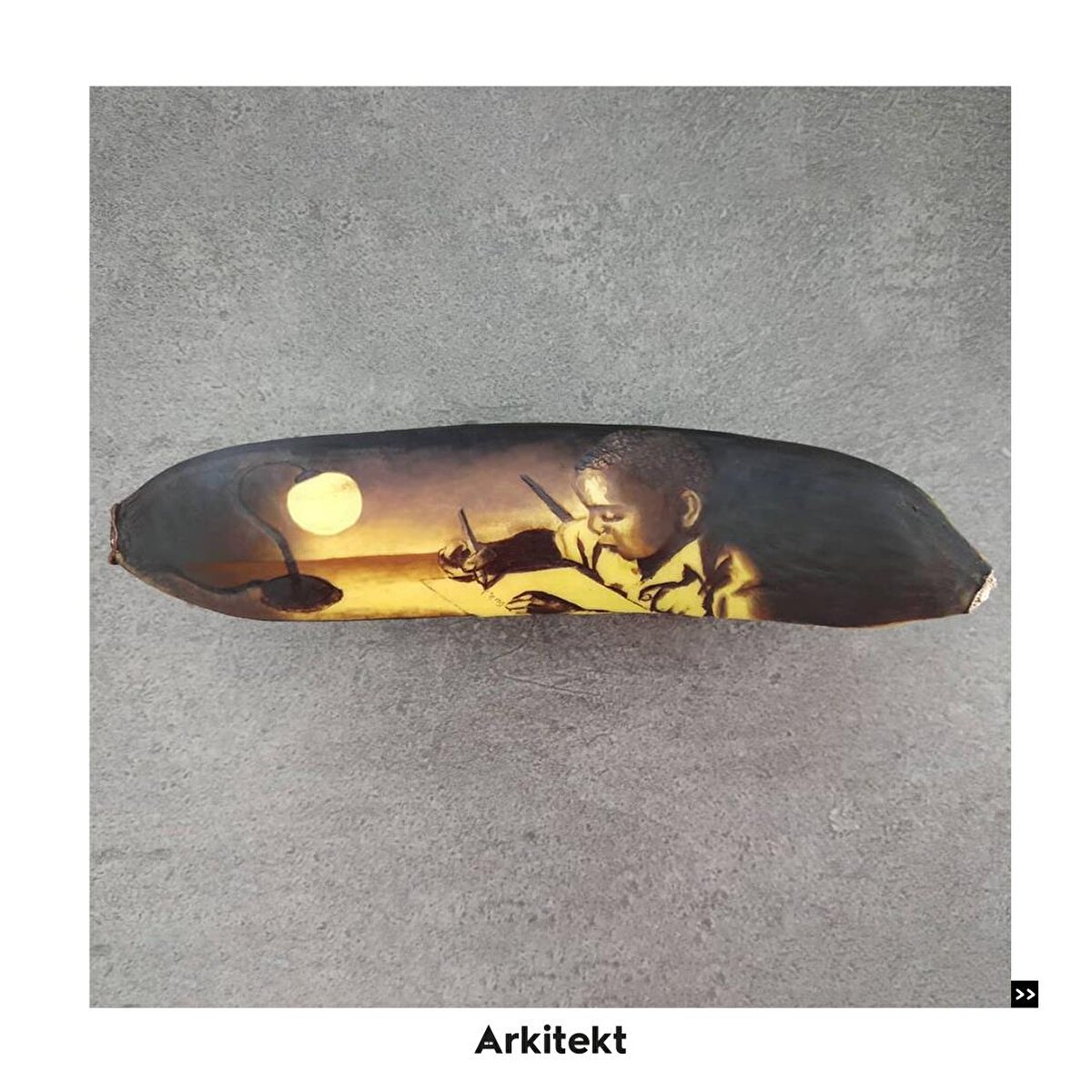 Girişimci Anna Chojnicka, tuval veya kağıt üzerine karalamalar yapmak yerine, muzları ince, keskin olmayan nesnelerle ezerek kabuk oksidasyonunu denemeye başladı. Saatler geçtikçe koyulaşan çürük kabuklar içine kazınan tasarımı ortaya çıkarıyor ve çeşitli manzaralar sunuyor.