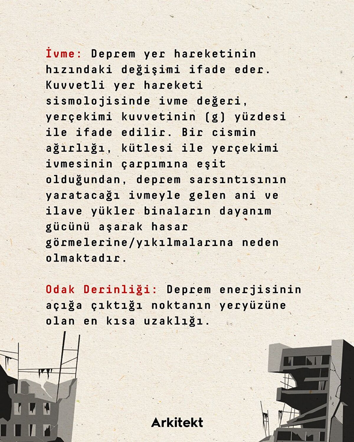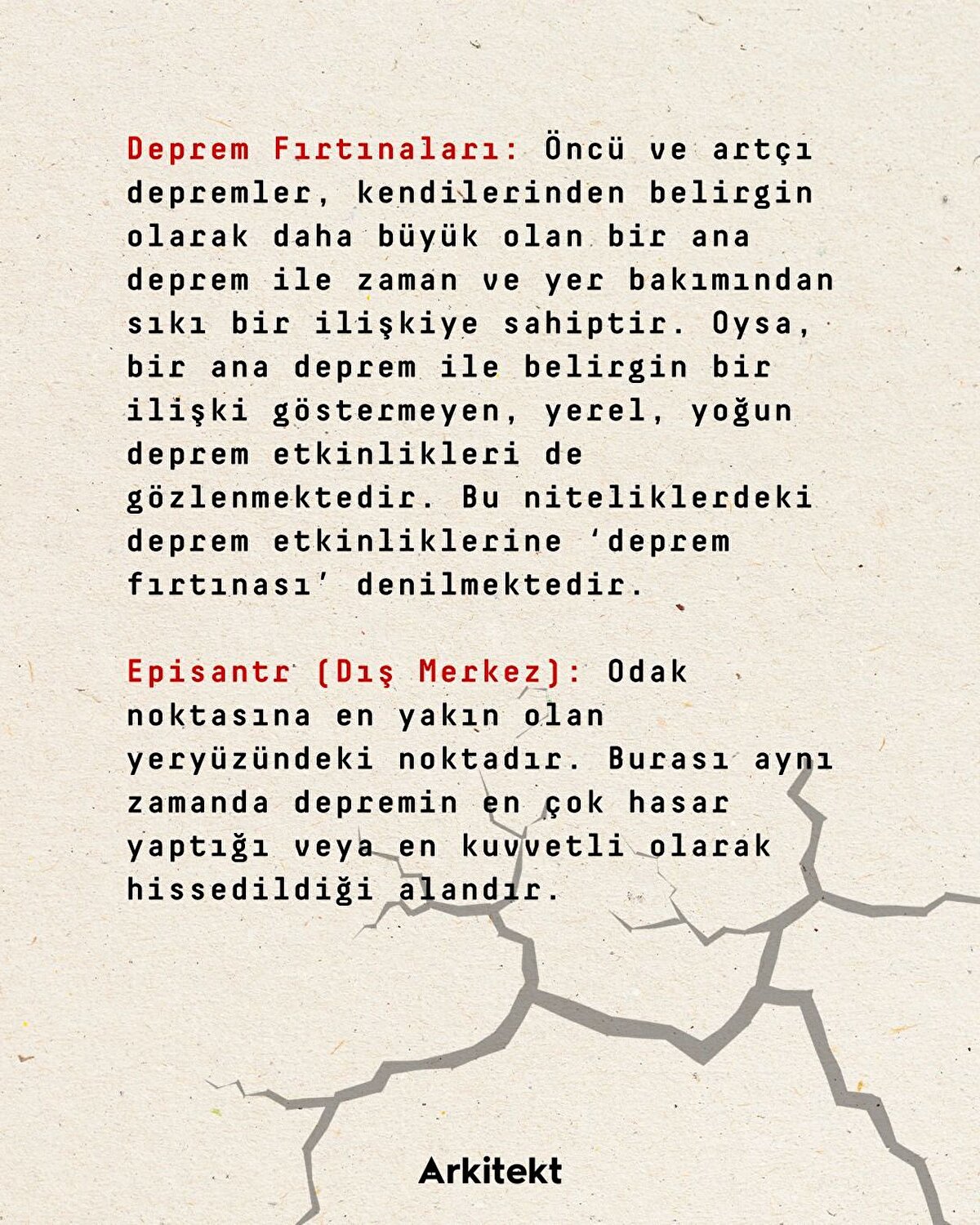 Türkiye deprem kuşağında ve depremle sürekli yüzleşen bir coğrafyada yer alıyor. Yalnızca uzmanların değil, bu topraklarda yaşayan herkesin, depremle ilgili verileri anlayabilmek için öncelikle terminolojiye hakim olması gerekiyor. Buna küçük de olsa bir katkıda bulunabilmek adına, en temel öğeleriyle 'Deprem Sözlüğü'nü sizler için derledik.