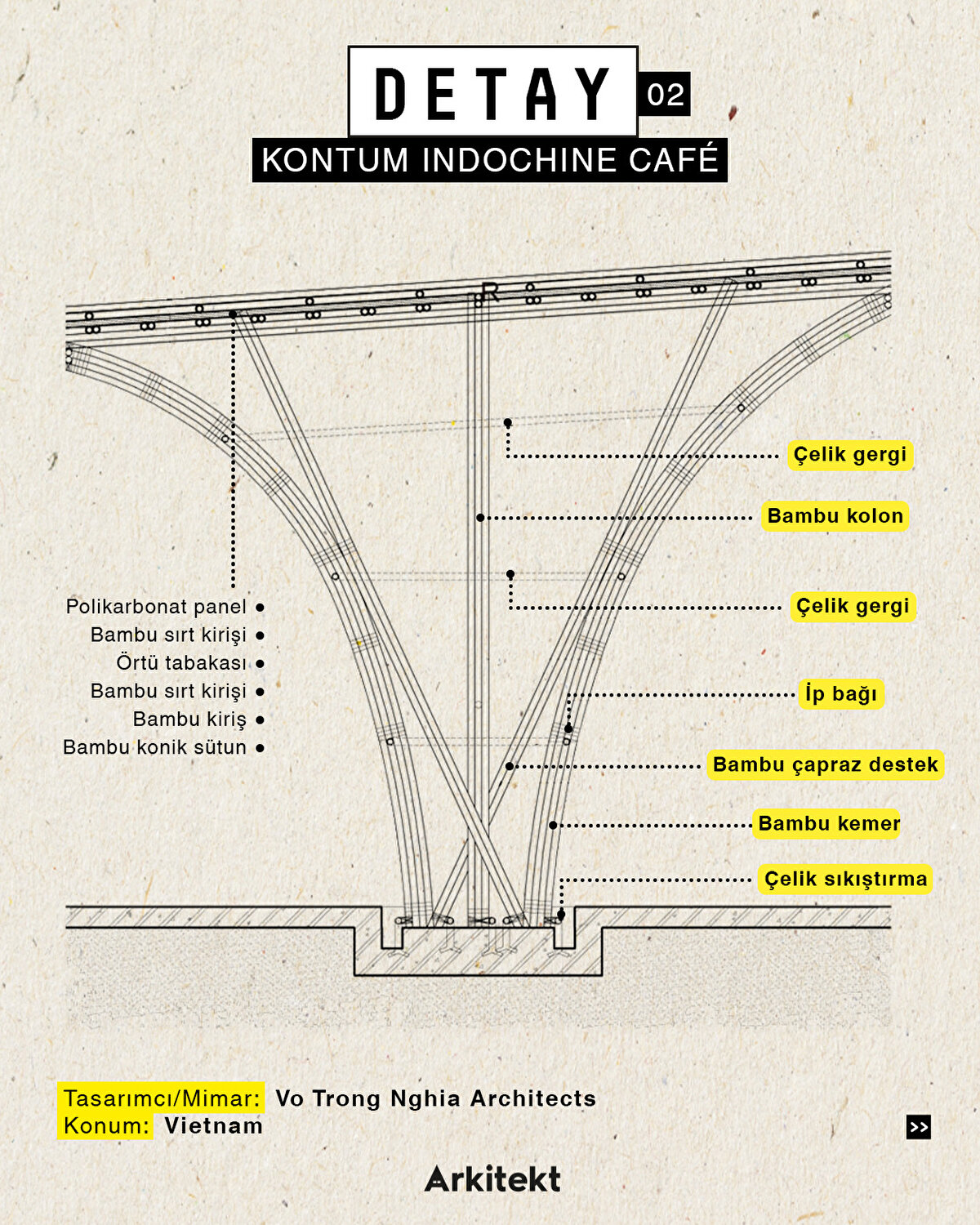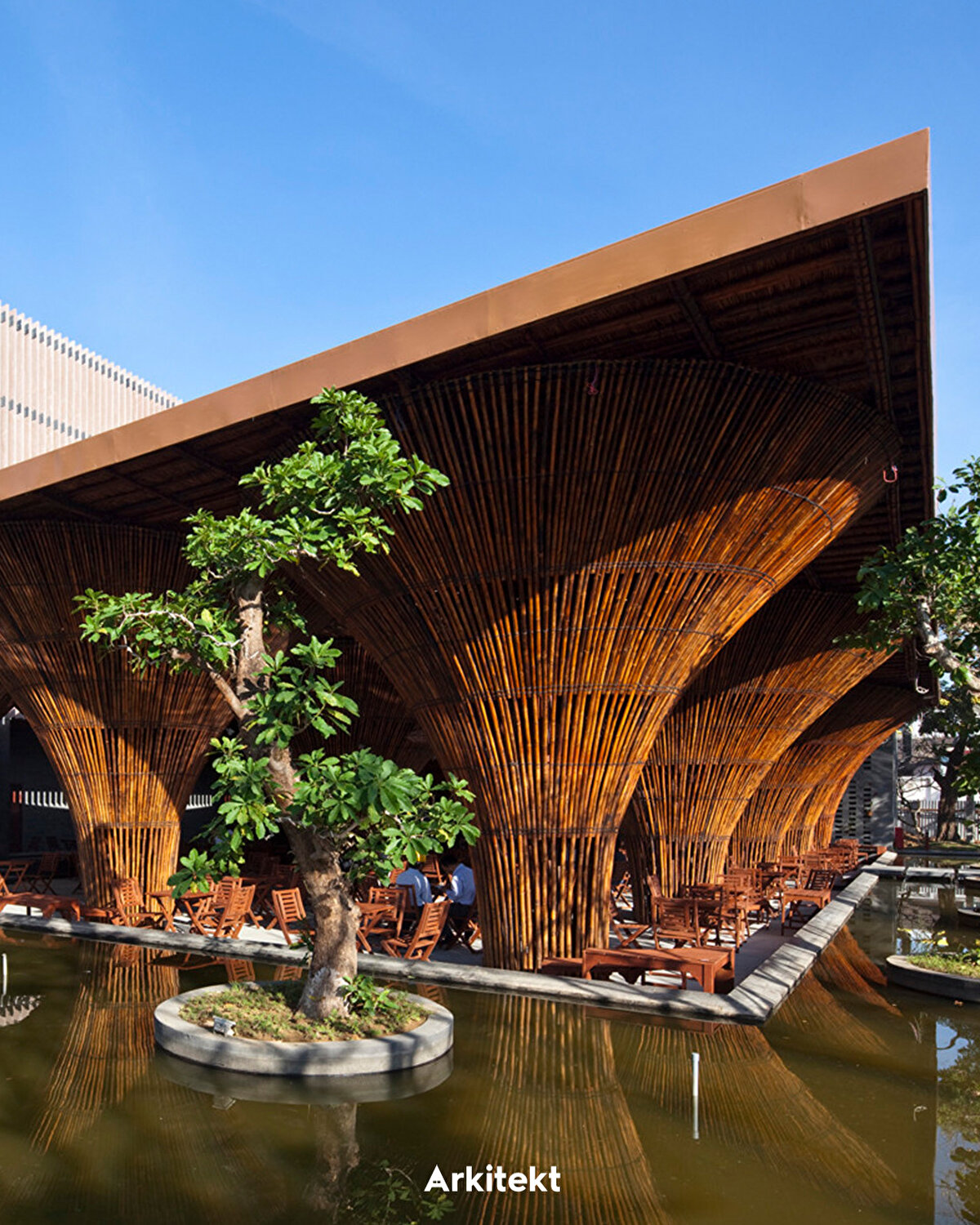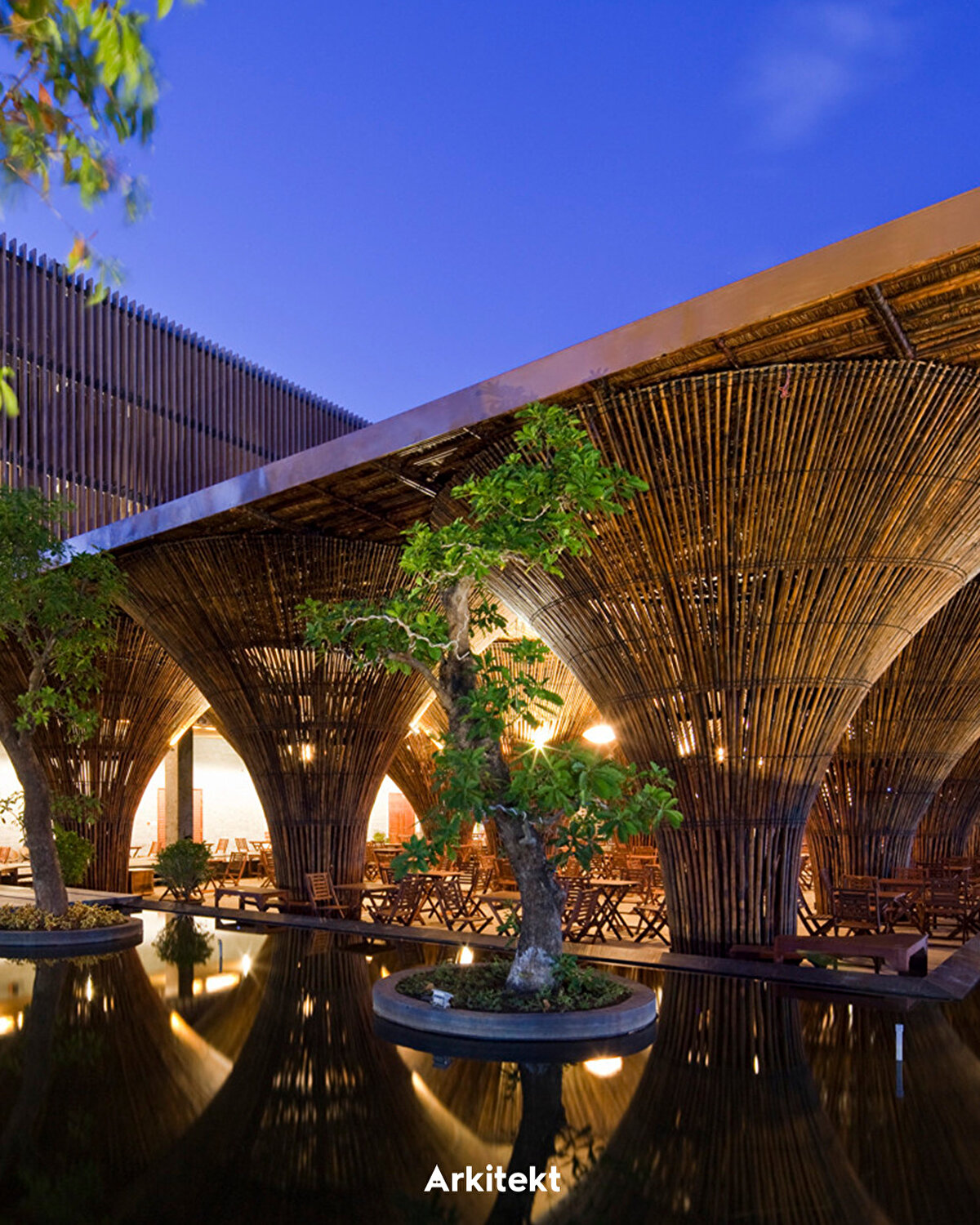 Vietnam'ın geleneksel balıkçı sepetlerinden ilham alan yapının detay çözümlerini ve görsellerini hep birlikte inceleyelim!