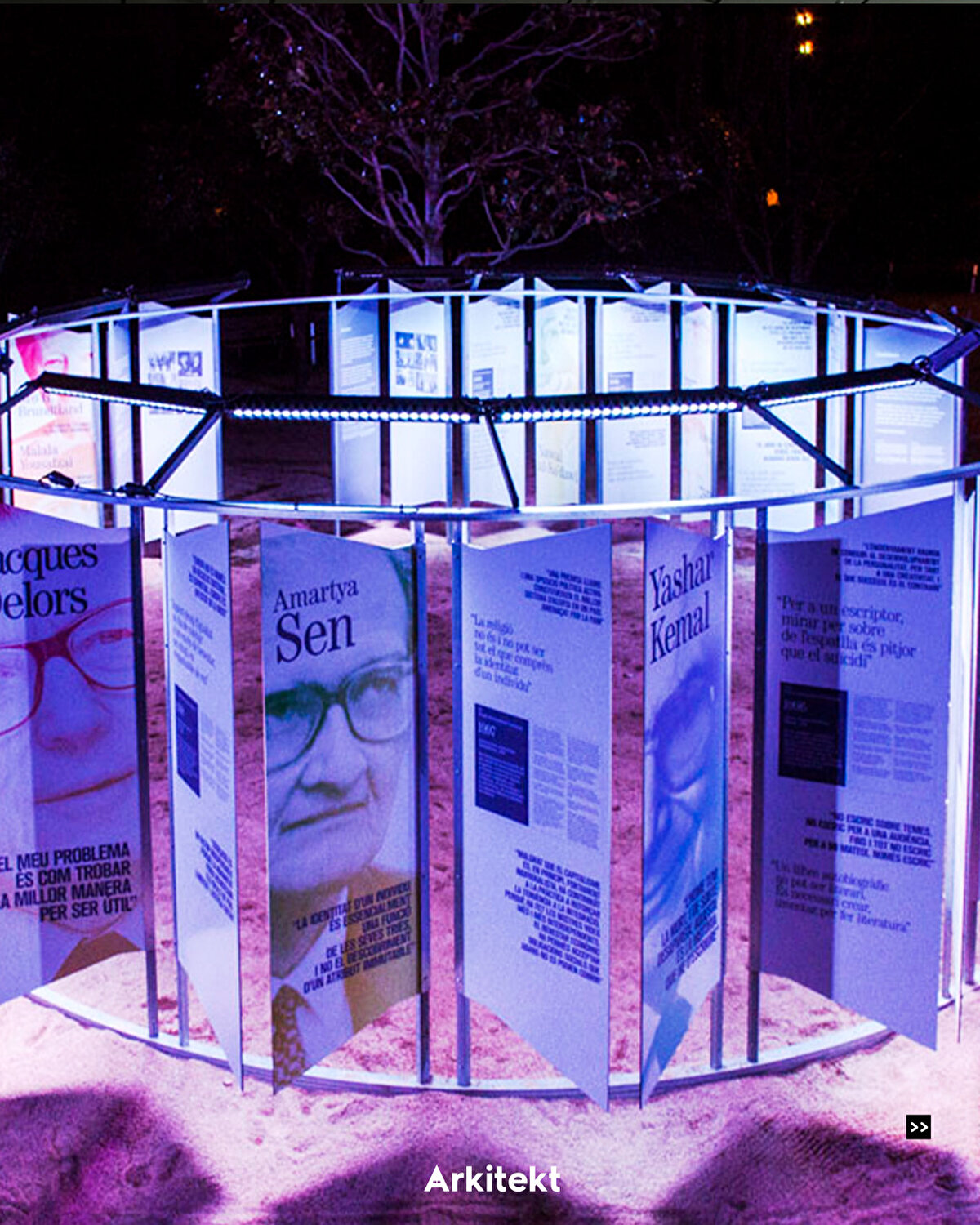 Ödülün görünürlüğünü ve tanınmasını sağlamak amaçlı tasarlanan yapı, Barselona'da bulunuyor. Verilen 25 ödülün her biri için bir panel, ayrıca ödül sürecini ve jürileri açıklamak için birkaç tane daha panel; üst ve alt yapıyı oluşturmak için daire şeklinde bükülmüş bir tüpten oluşuyor.