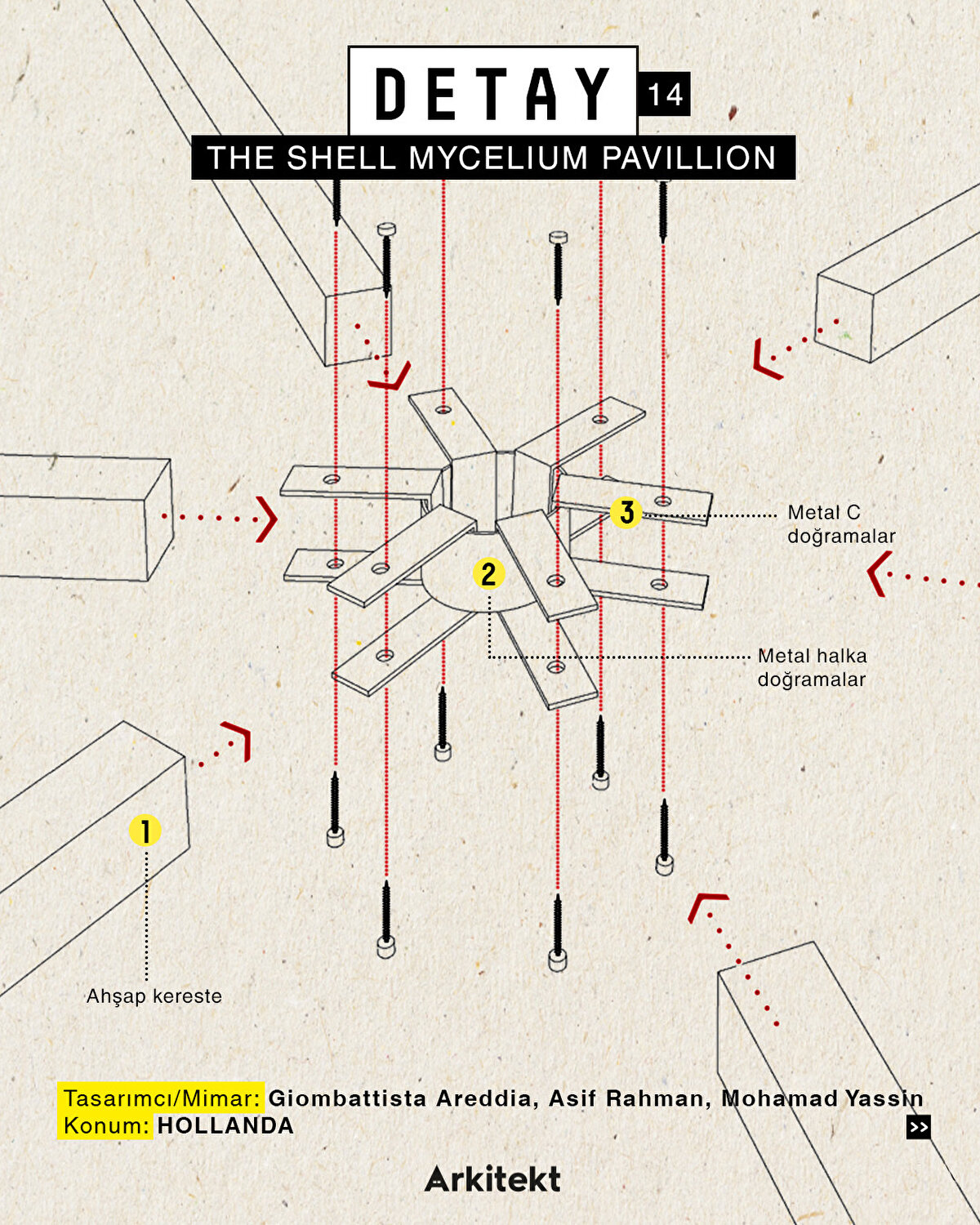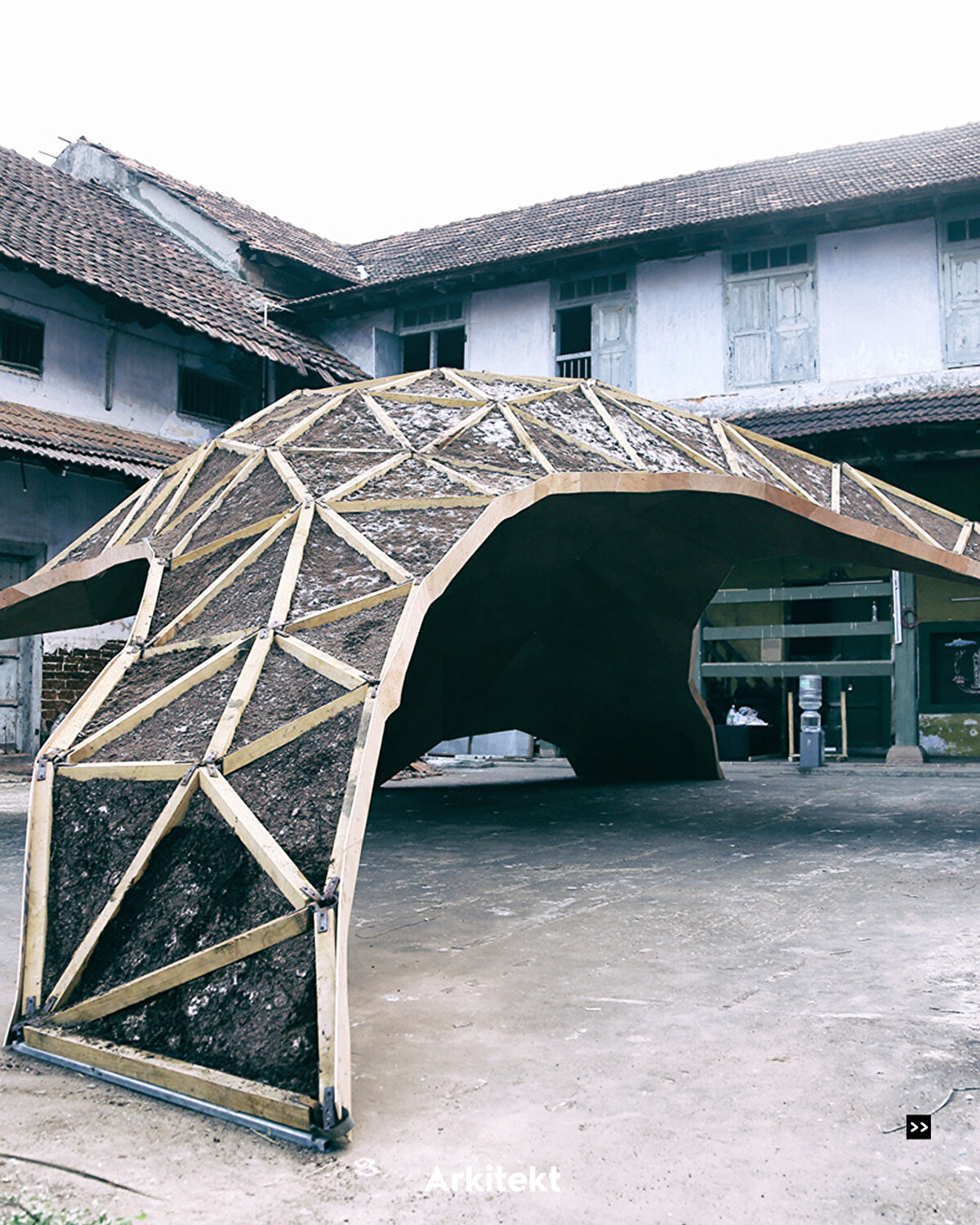 Shell Mycelium Pavillion , BEETLES 3.3 ve Yassin Areddia Designs arasındaki bir işbirliği ve geçici yapılar aracılığıyla bilinçli tasarıma bir alternatif sunuyor.