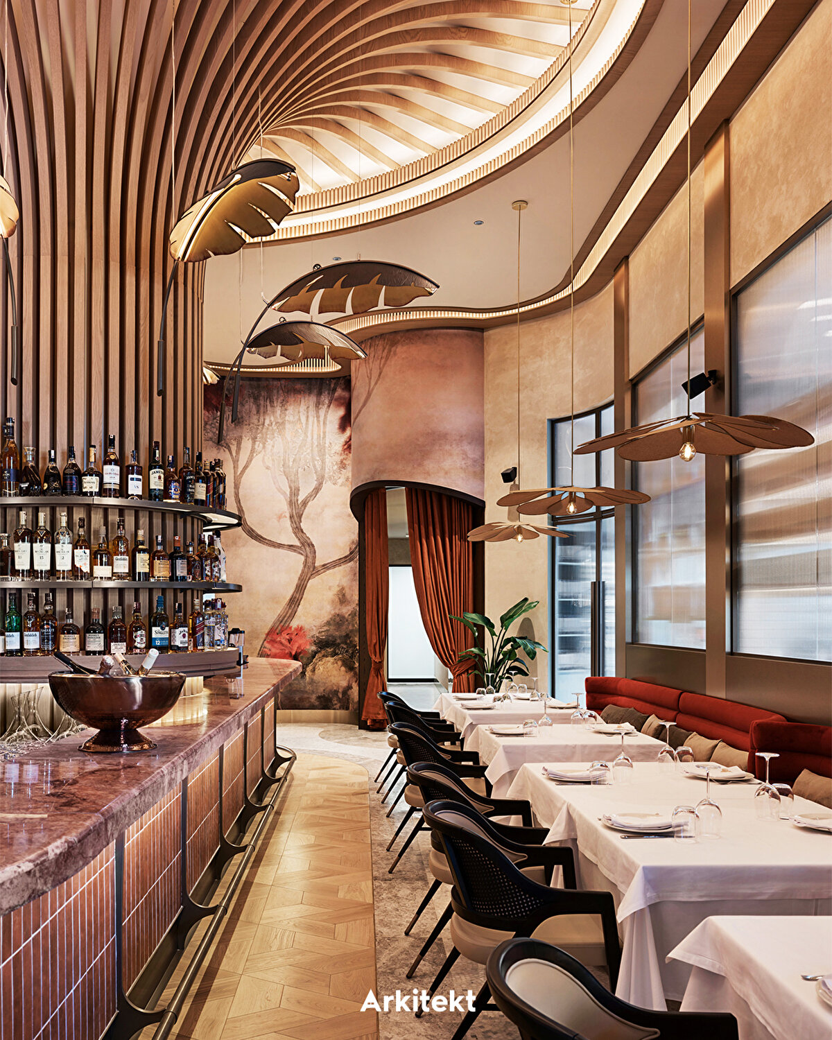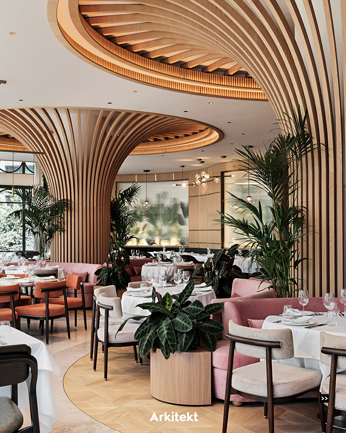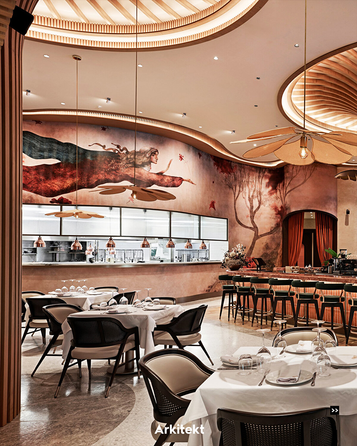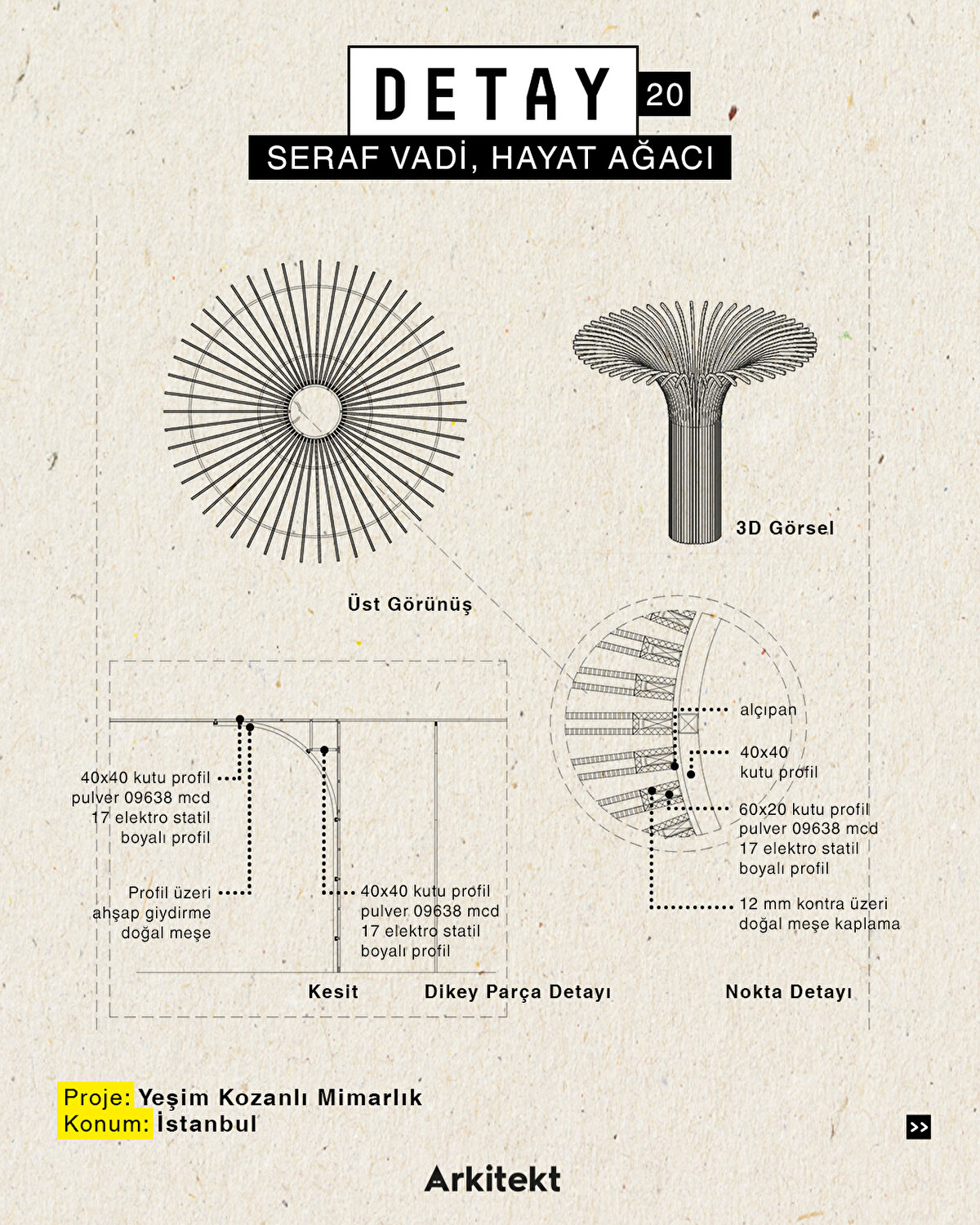 Yeşim Kozanlı Mimarlık tarafından tasarlanan Seraf Vadi Restoranı, iç mekanda kullanılan “Hayat Ağacı" formuyla ön plana çıkıyor. Tasarımın konsept fikrini oluşturan bu form, yapısal taşıyıcı işlevinin yanı sıra renk, malzeme ve iç mimari gibi temel unsurları da etrafında toplayarak dinamik bir atmosfer tanımlıyor. @yesimkozanli