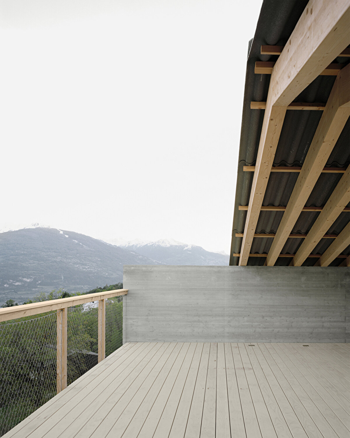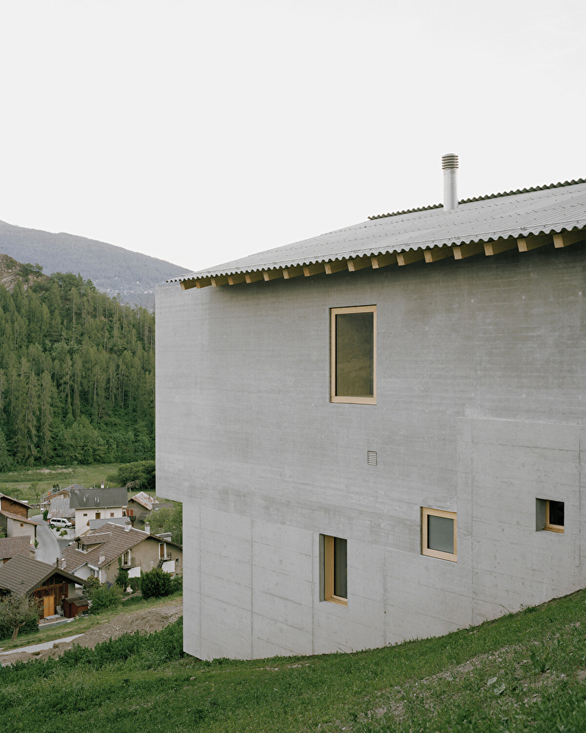 Deschenaux Follonier tarafından 2019 yılında tasarlanan ve 190 m²'lik bir alanı kaplayan bu konut, İsviçre'nin Ayent köyünde yer alıyor. Yapı, çevredeki geleneksel ahırlardan izler taşıyan bir malzeme diliyle kırsal bağlama referans veriyor. Beton ve ahşap strüktürün birlikte kullanımı, taban, ana gövde ve çatının ayrışmasını sağlayarak yapının katmanlı yapısını vurguluyor.