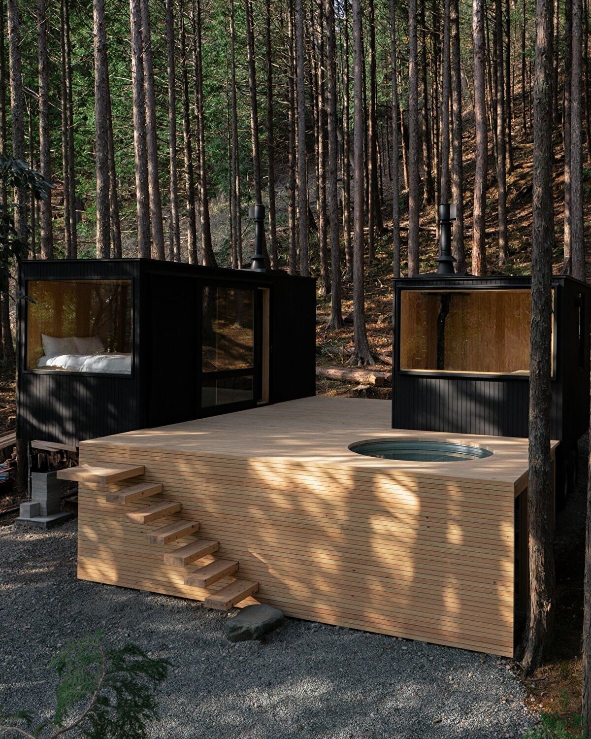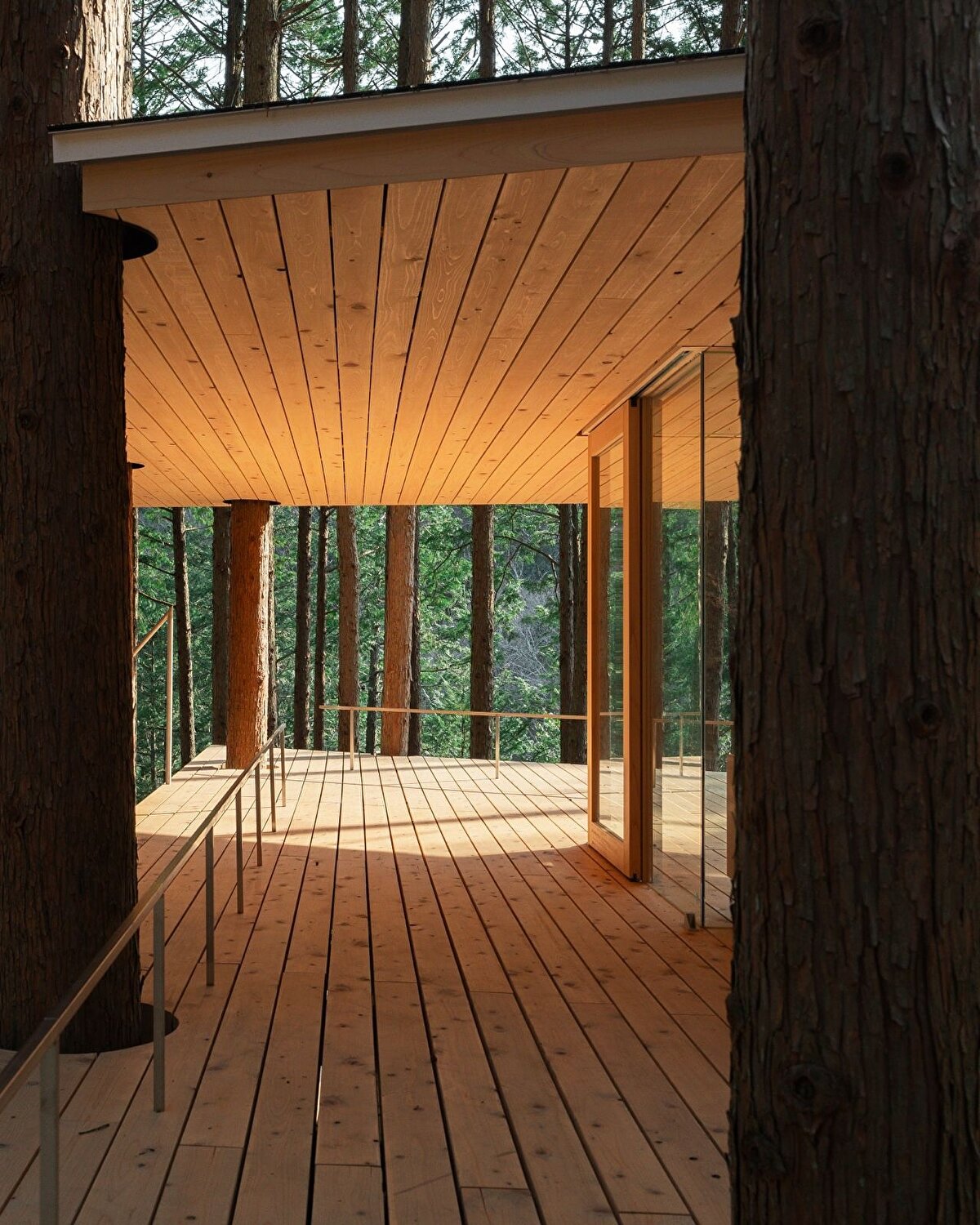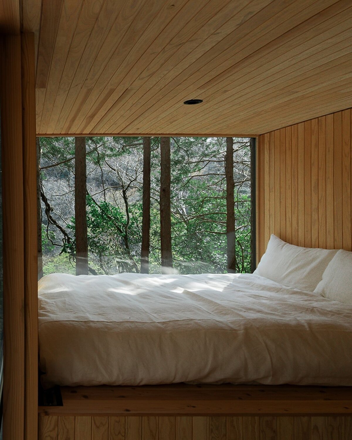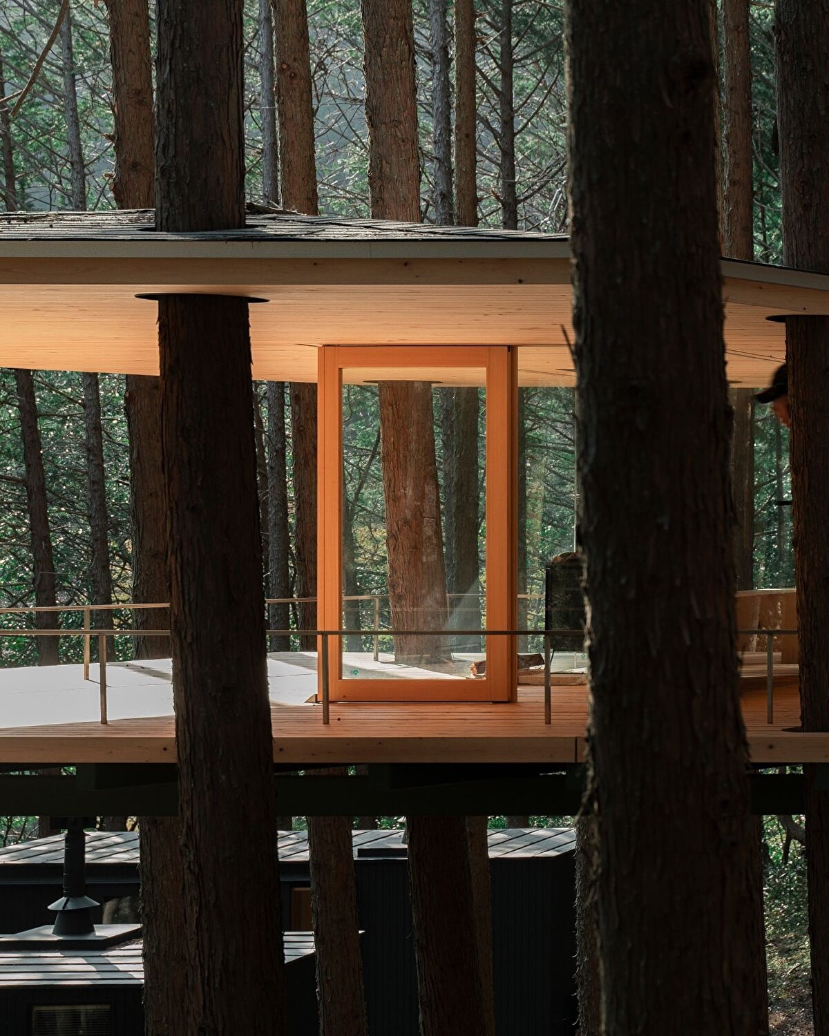 Bu yaklaşımın somut örneklerinden biri, Kanagawa ormanında konumlanan “Tree Sauna" adlı yapı oluyor. Bu proje, sauna ve konaklama işlevlerini bir araya getirirken, aynı zamanda çevredeki doğal dokuyla mümkün olan en az müdahale ile ilişki kurmaya çalışıyor. Yapı, ağaçlara dokunmadan konumlandırılıyor, eğimlere ve mevcut bitki örtüsüne göre şekil değiştiriyor. Tasarım, çevreye göre eğilen, bükülen ve yer yer kırılan formlarıyla doğaya uyum sağlamaya çalışırken, bu durumu bir estetik tercih değil, mimarinin çevreye yanıt verme biçimi olarak tanımlıyor. Bu yönüyle proje, doğaya müdahale etmektense, onunla birlikte var olma fikrini merkeze alıyor.