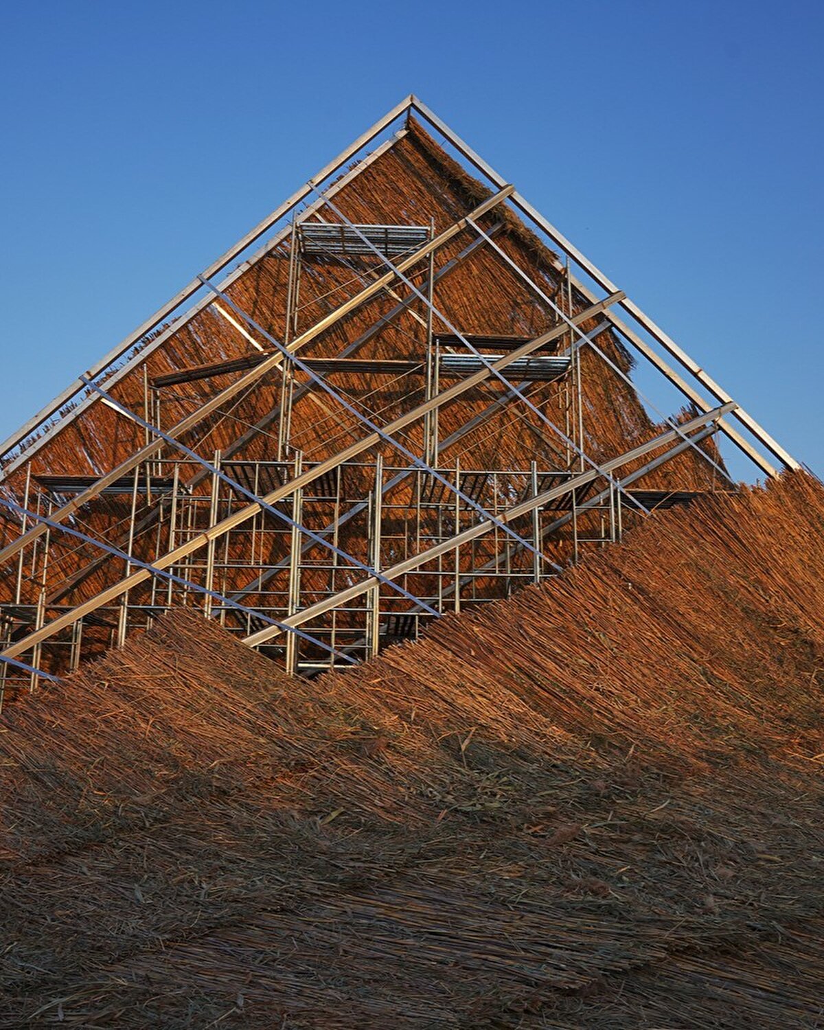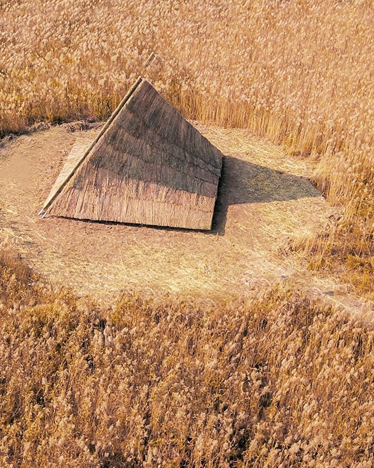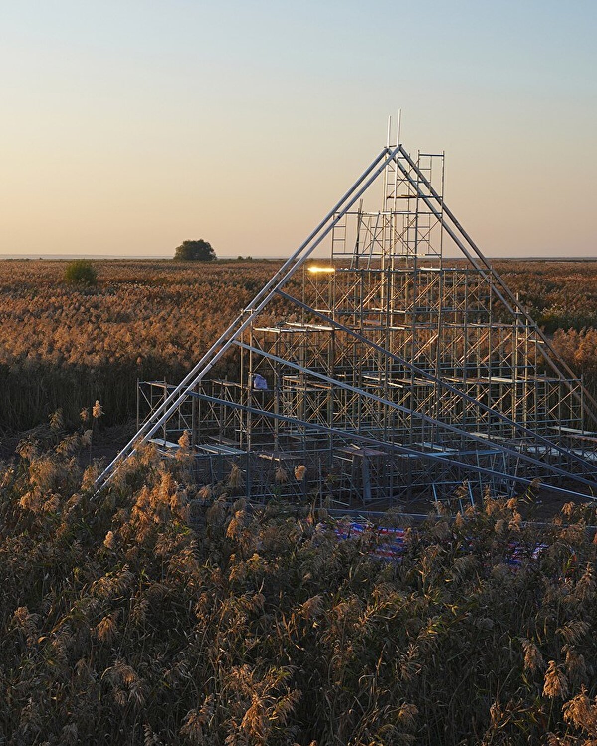 Yapı, tarlanın ortasında büyük bir kavisli form olarak yükseliyor. Kavisli yüzeyler arasındaki boşluklar, rüzgâr, yağmur, ışık ve diğer canlılar için geçitler oluşturuyor. Dış mekân açık ve aydınlık olup, ziyaretçilerin oturmasına, uzanmasına ve manzarayı seyretmesine olanak tanırken; iç mekân sessiz ve korunaklı bir ortam sunarak meditasyon ve yalnızlık için uygun bir alan sağlıyor. Zemin sazlarla kaplanıyor ve çelik kolonlar tüm "dağı" destekliyor.
