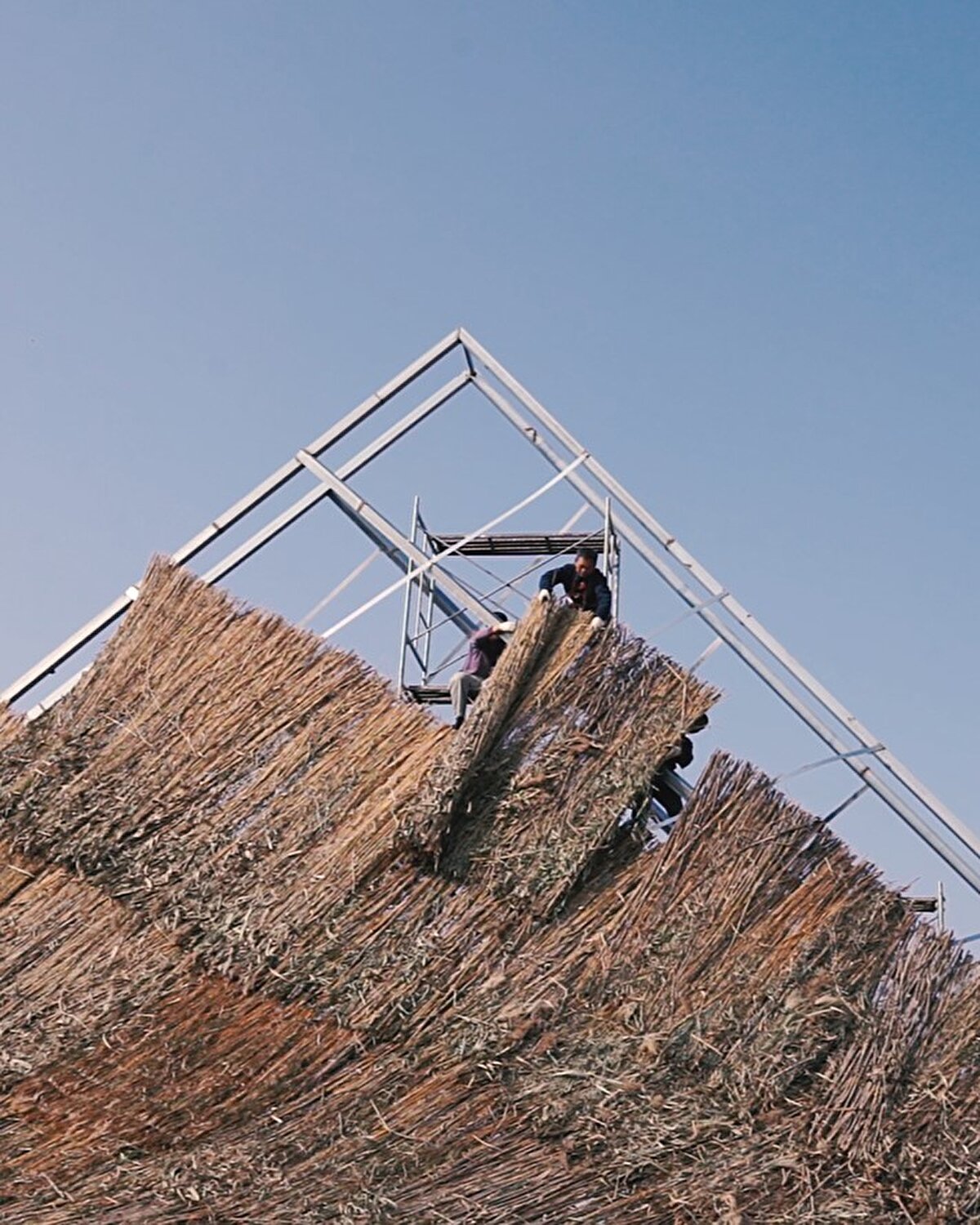 Projenin ana malzemesi olarak ilk kez saz hasırı kullanılıyor. Bu doğal malzeme, içteki çelik yapının endüstriyel görünümünü örtüyor. Saz yaprakları ve çiçekleri, makinelerle yüzey formuna dönüştürülerek, hafif bitkiler yüksek yoğunluklu ve kaliteli bir maddeye evriliyor.