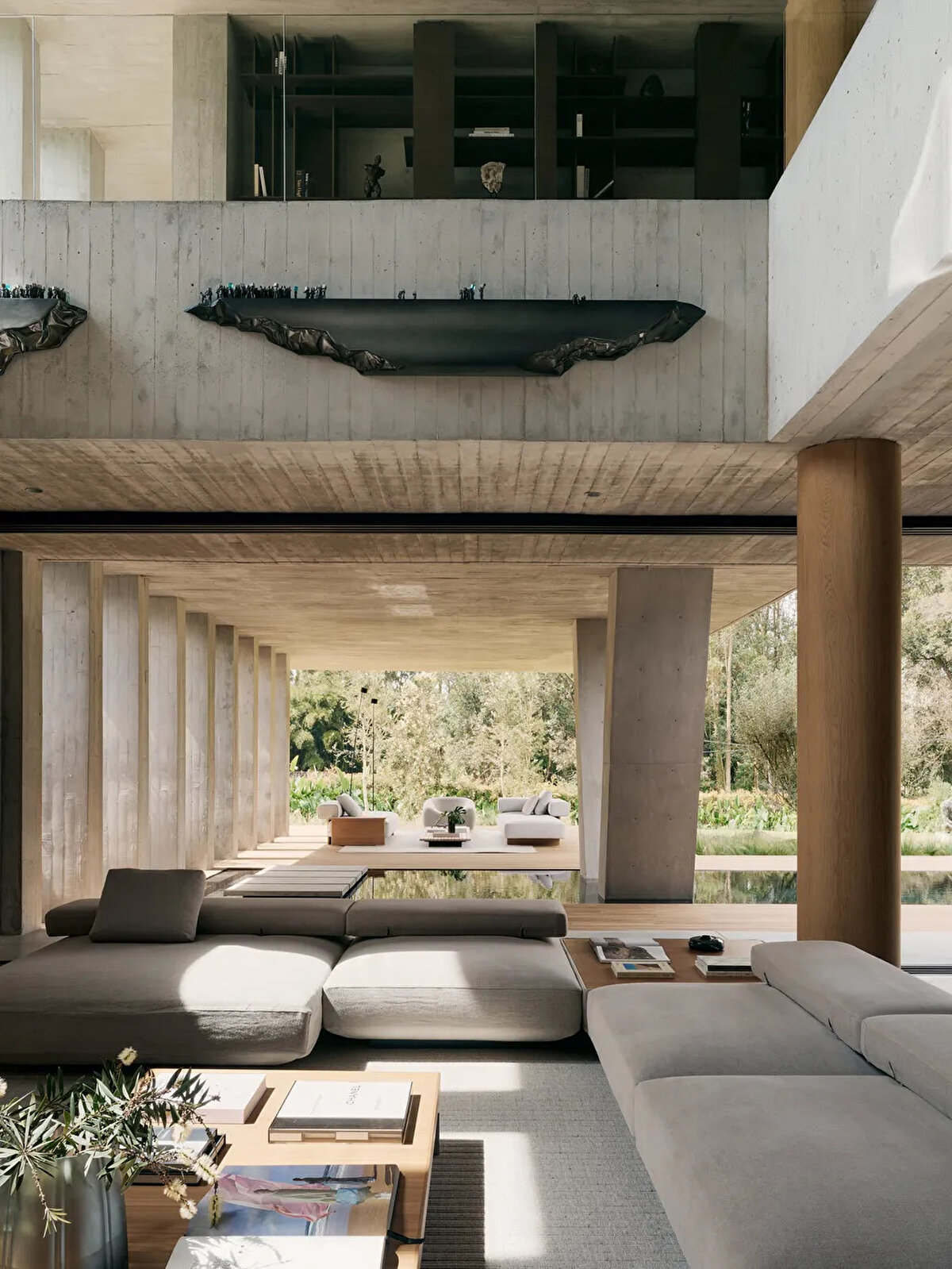 The residence is located in a mountainous area outside Medellín, Colombia, and is called “Casa Haras". The building has an area of 780 square meters and features brutalist architectural elements. The exterior is covered with black aluminum panels and a bronze sculpture greets visitors at the entrance. The interior features works by artists such as Danilo Cuadros, Andrés Layos and Julian Voss-Andreae.
