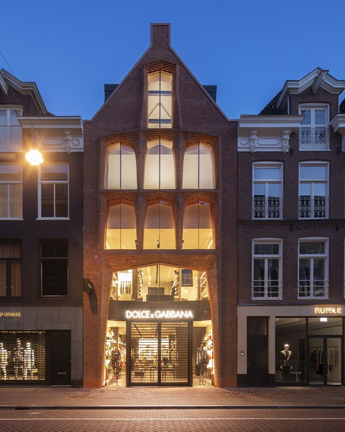 Dolce & Gabbana, Amsterdam'ın ünlü PC Hooftstraat perakende bölgesinde yeni bir mağaza açtı. Dok Architecten tarafından tasarlanan cephe, "yüksek topuklu ayakkabılar giyen güçlü bir kadın" imajından esinlenerek tasarlanıyor.