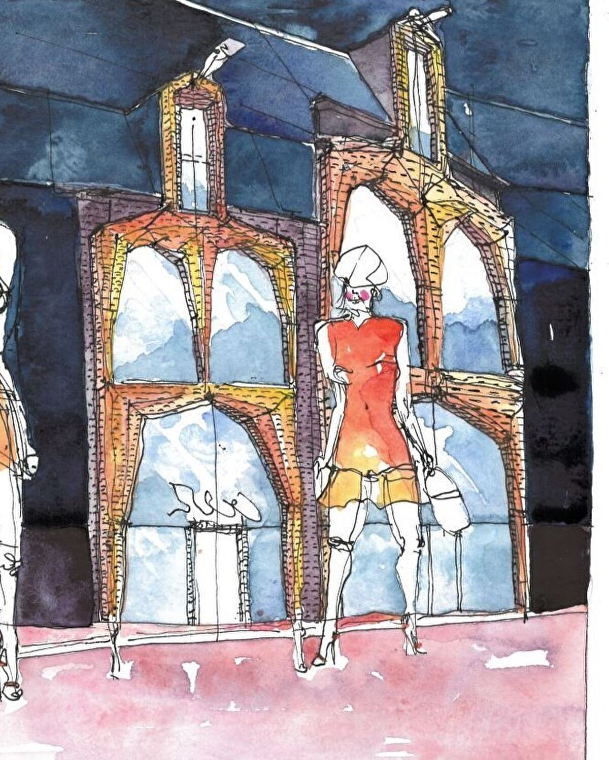 Eğimli yüzeylerin gölgelerle oynayarak oluşturduğu etki, cepheyi hem güçlü hem de zarif bir hale getiriyor. Mimarlar, bu tasarımda kadının güçlü gövdesinin enerjisini, uzun bacakları aracılığıyla ince topuklara ilettiğini söylüyor.