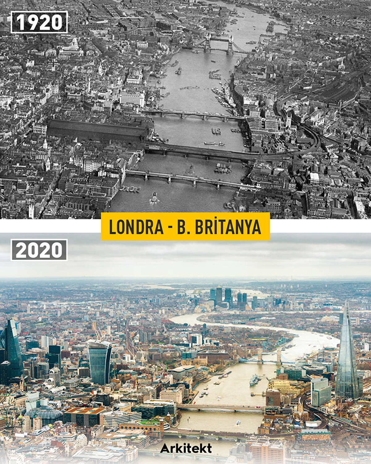 Dünya üzerinde tarıma dayalı ilk yerleşimden itibaren dünya üzerinde pek çok şey değişti fakat teknolojinin gelişmesi ile birlikte bu süreç hız kazandı ve daha çok dikkat çeker hale geldi. Kentleşme hızını takip etmek fotoğraflar olmasa, imkansız... Dünyanın en ünlü şehirlerinden ve başkentlerinden birçoğu, önceki görüntülerine kıyasla büyük farklılıklar ve yeni silüetler taşıyor. Kuşbakışı fotoğraflarla yıllar içindeki bu değişim şaşırtıyor.
