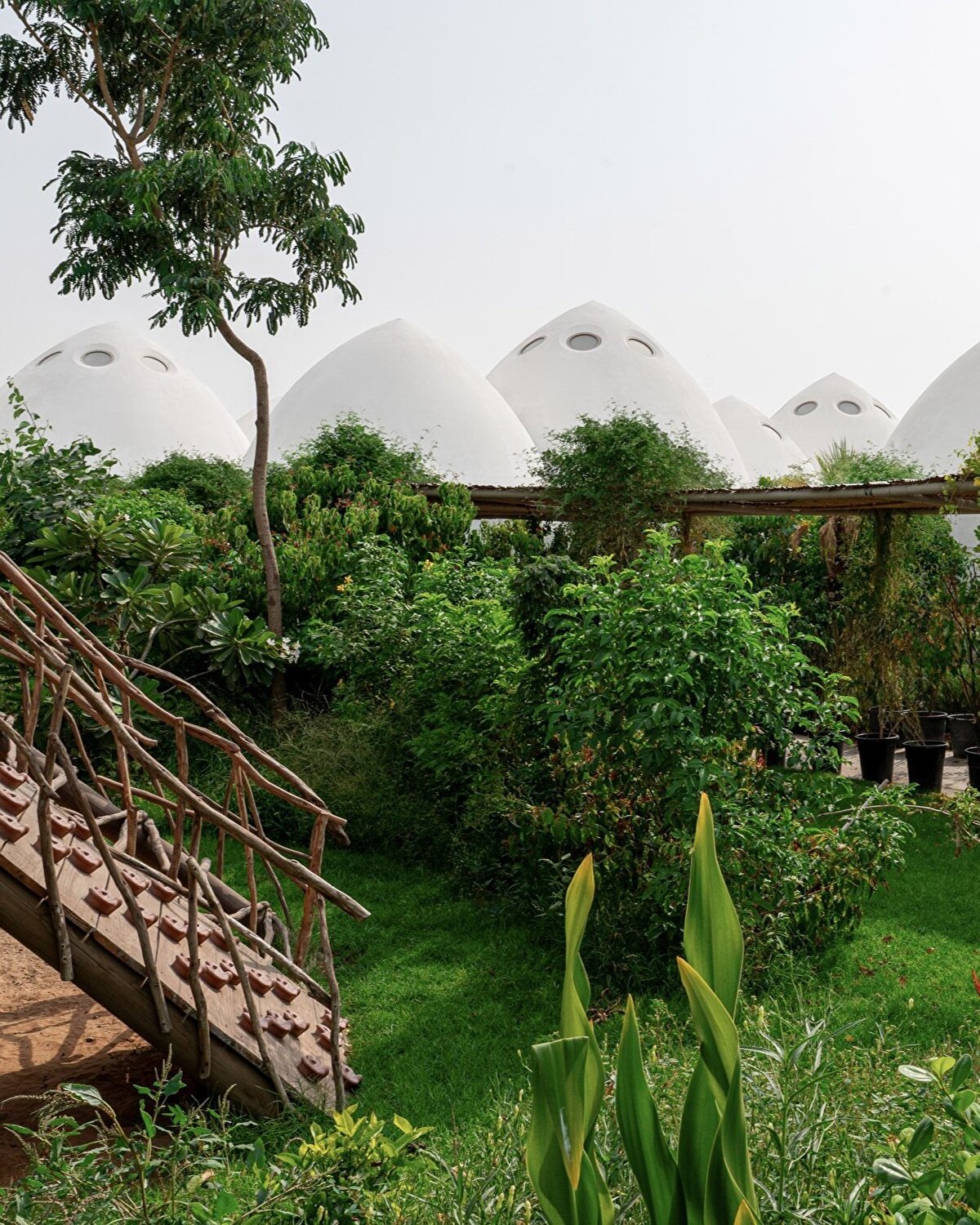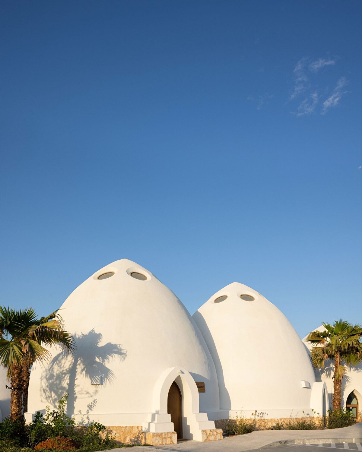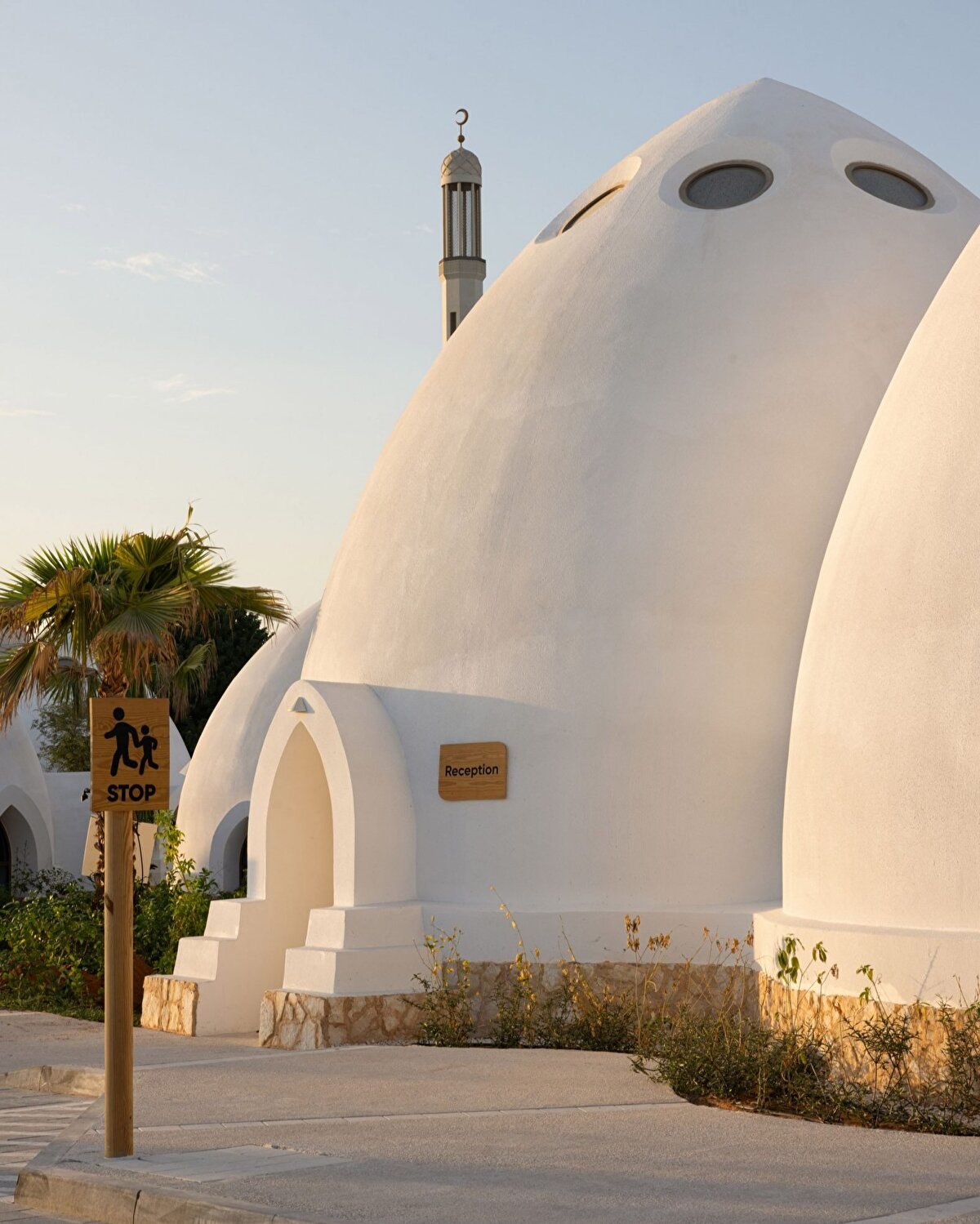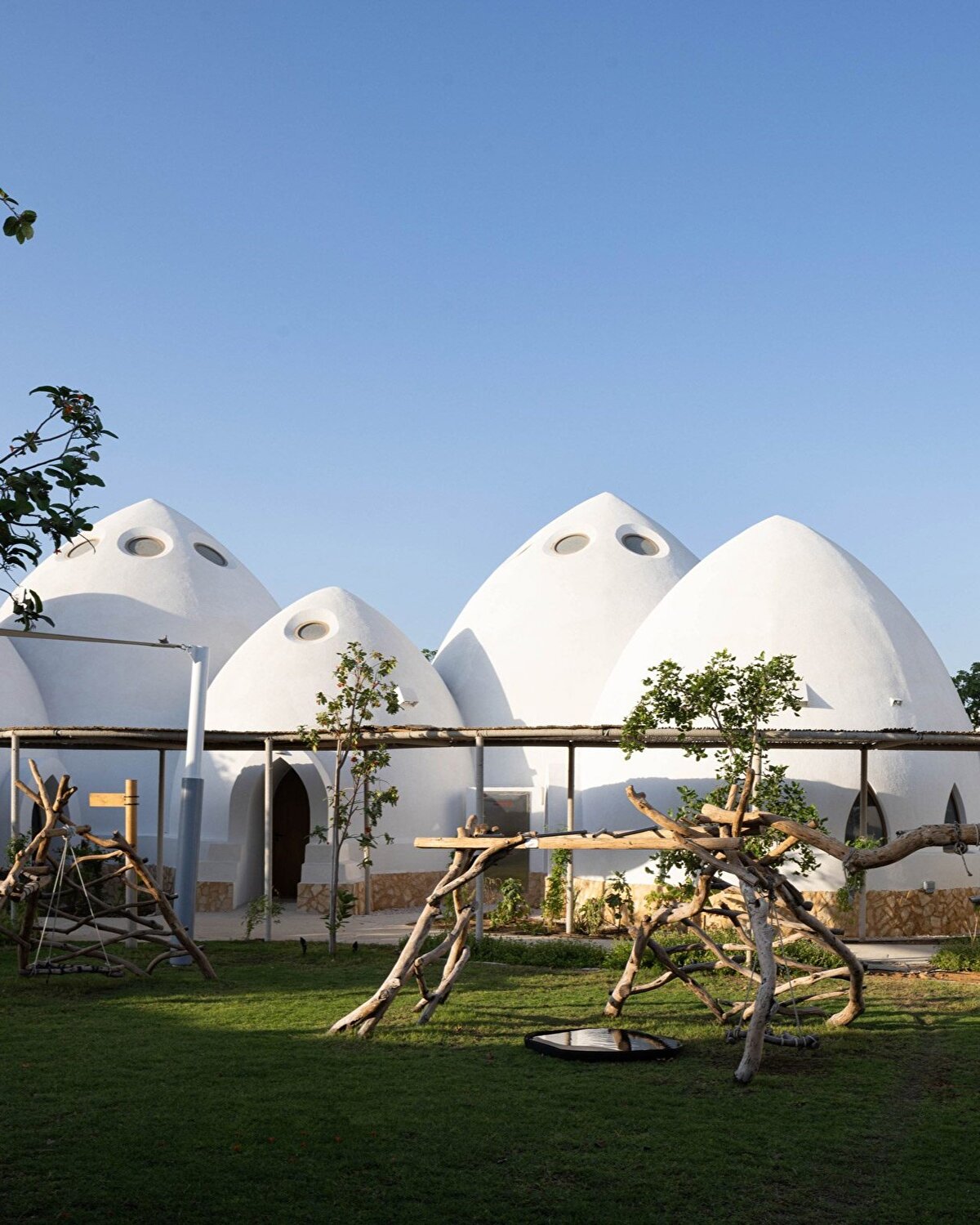 Al Fanar School, located in Dubai's Nab Al Sheba district, stands out with its pointed domed classrooms designed by Emkaan. Concrete domes clustered around curved paths integrate with gardens and playgrounds to create an organic layout. Inspired by the arches and domes of Islamic architecture, the design also draws inspiration from feng shui principles and the fluid movements of koi fish.