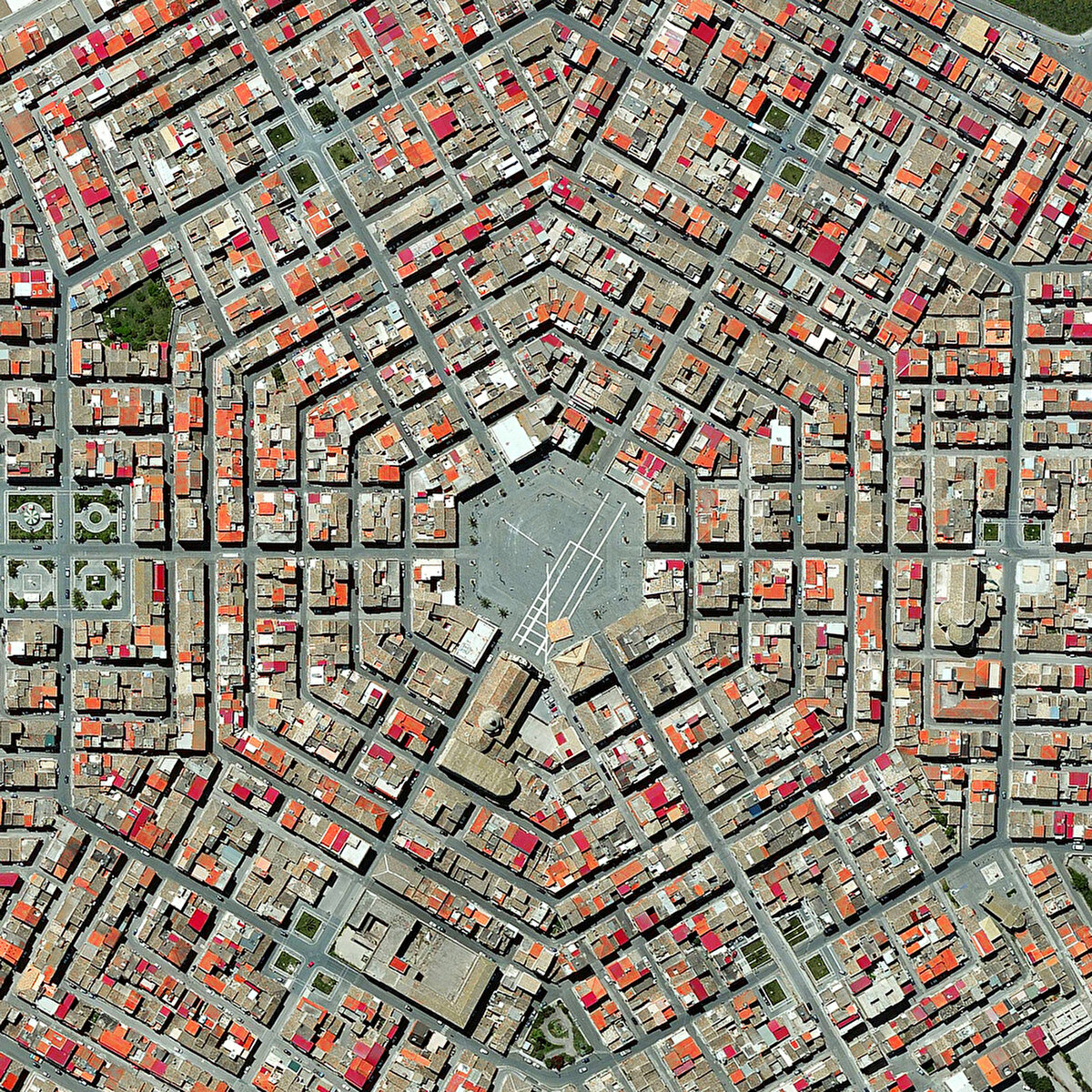 Kent meydanları, kent sakinlerinin çeşitli aktivite ve eylemlerine sahiplik eden ve görsel sınırlarla belirlenen mekanlardır. Meydanlara havadan bakıldığında mimari tasarımlarıyla ve kentsel bağlamdaki yerleşimleriyle ilgili kamusal alanların ve sokakların düzenlenmesi ve boş/dolu ilişkisi gibi yönleri ortaya çıkar. Arkitekt, bazı kentlerin kuşbakışı görüntülerini sizler için derledi; 1-Palmanova, İtalya 2-Barselona, İspanya 3-Avola, İtalya 4-Paris, Fransa 5-Barselona, İspanya 6-Meksika 7- San Pietro Meydanı, Vatikan 8-Grammichele, İtalya