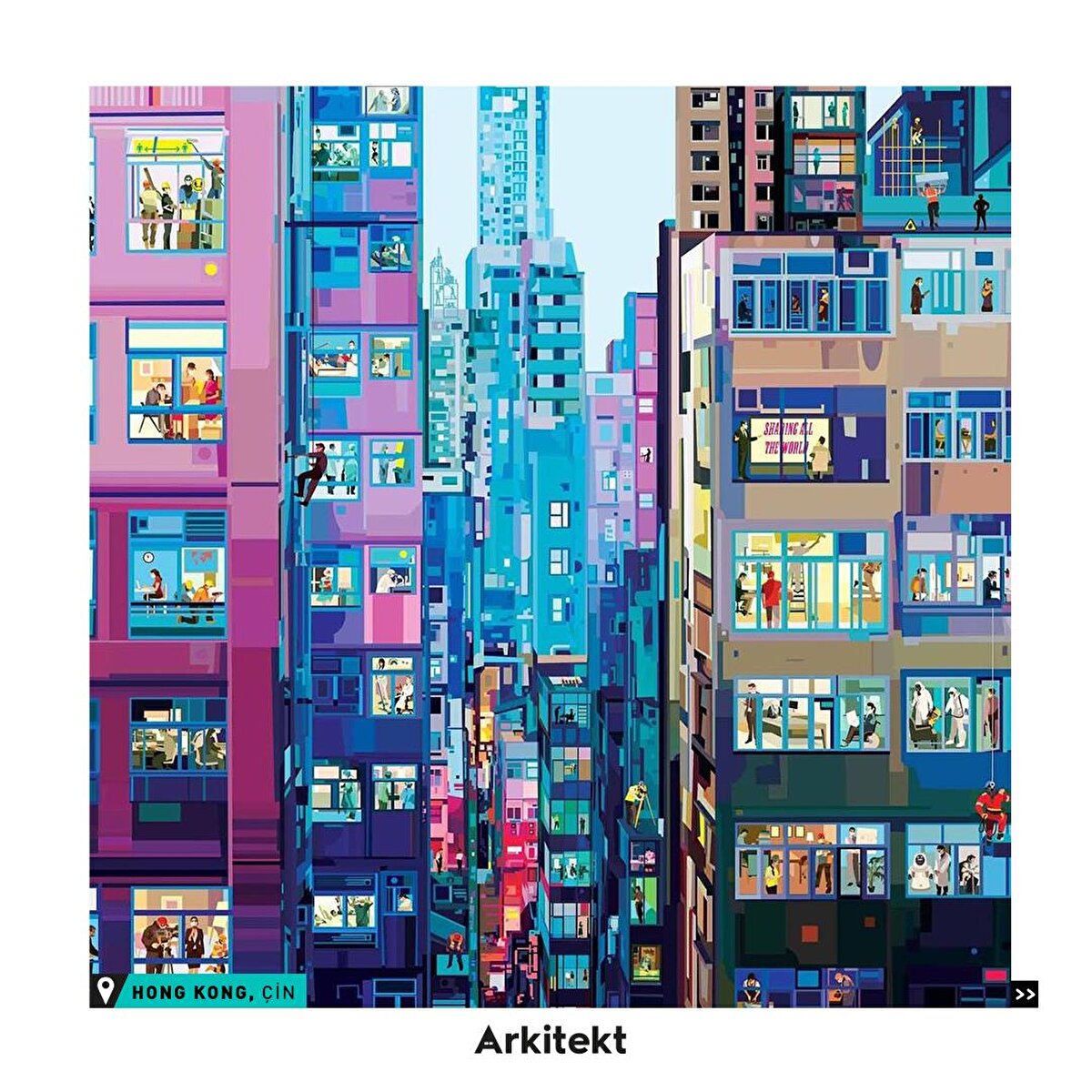 Balkonlarında, teraslarında ve odalarında vakit geçiren şehir insanının aktivitelerine odaklanan görsellere yakınlaşarak tekrar bakın, her seferinde başka bir ayrıntı dikkatinizi çekecek...