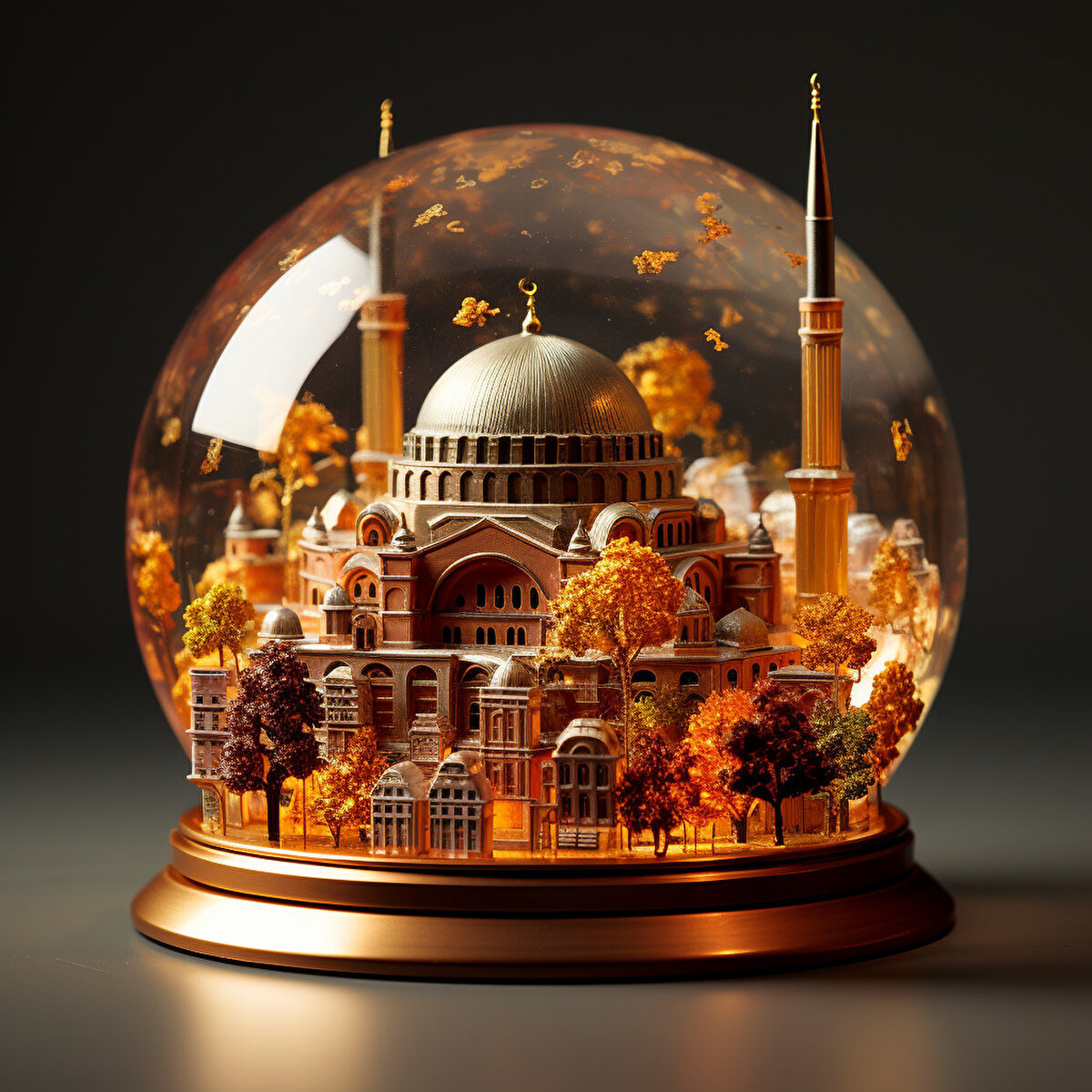 Sembol haline gelmiş yapılar bir sonbahar gününde dondurulsa ve bir cam küreye sığdırılsa nasıl görünürdü? Arkitekt yapay zeka aracılığıyla sizin için tasarladı.