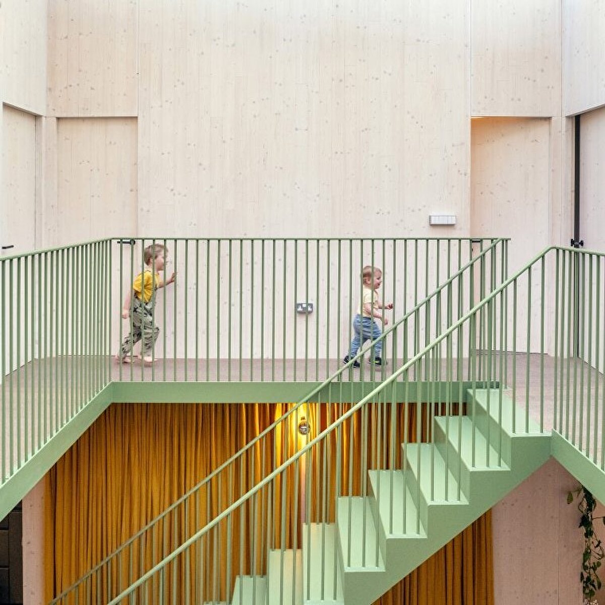Evin basit 'blok' formu, Çapraz Lamine Ahşap (CLT) çerçevenin verimli kullanımı nedeniyle tercih ediliyor. İç kapılar ve çerçeveler CLT'den yapılıyor.