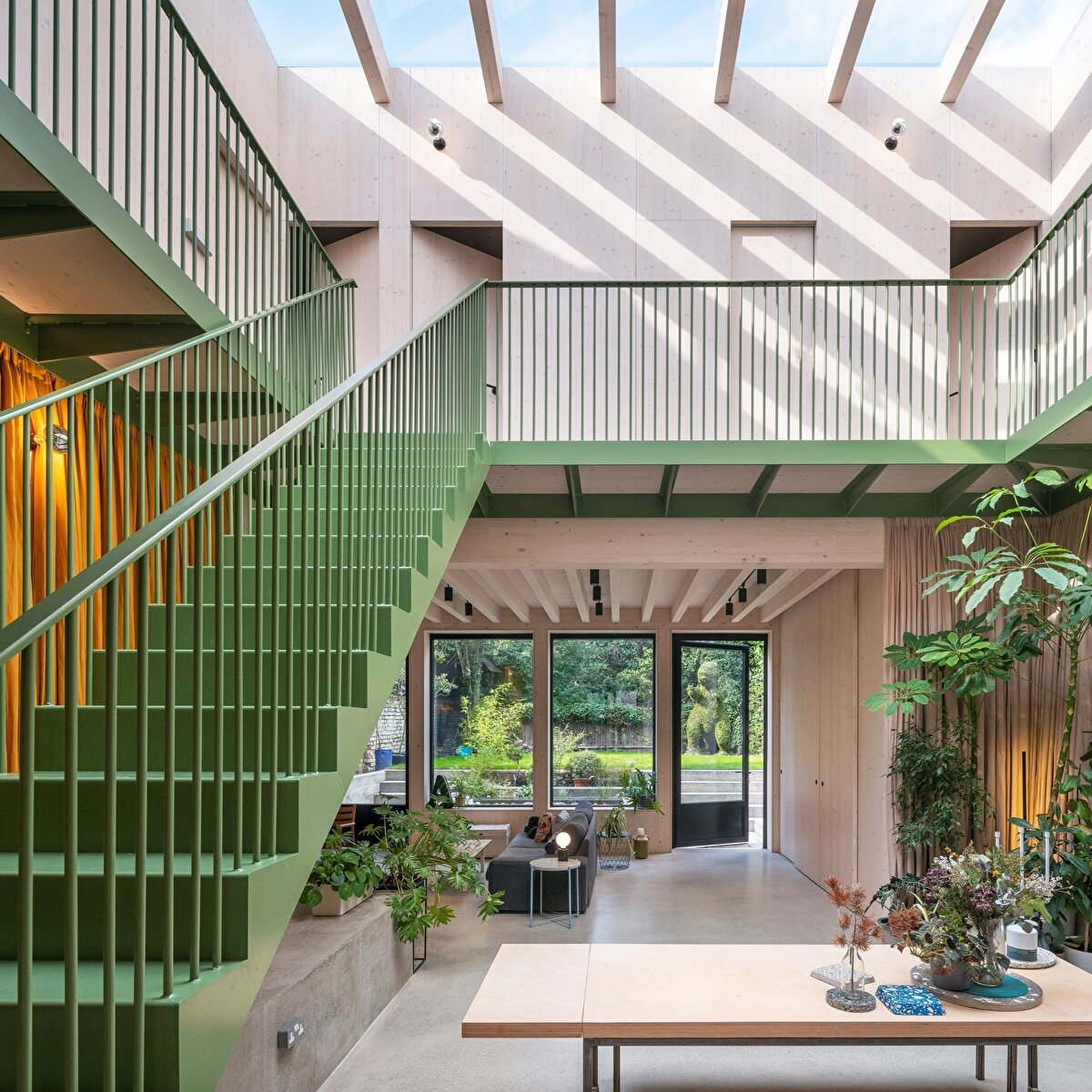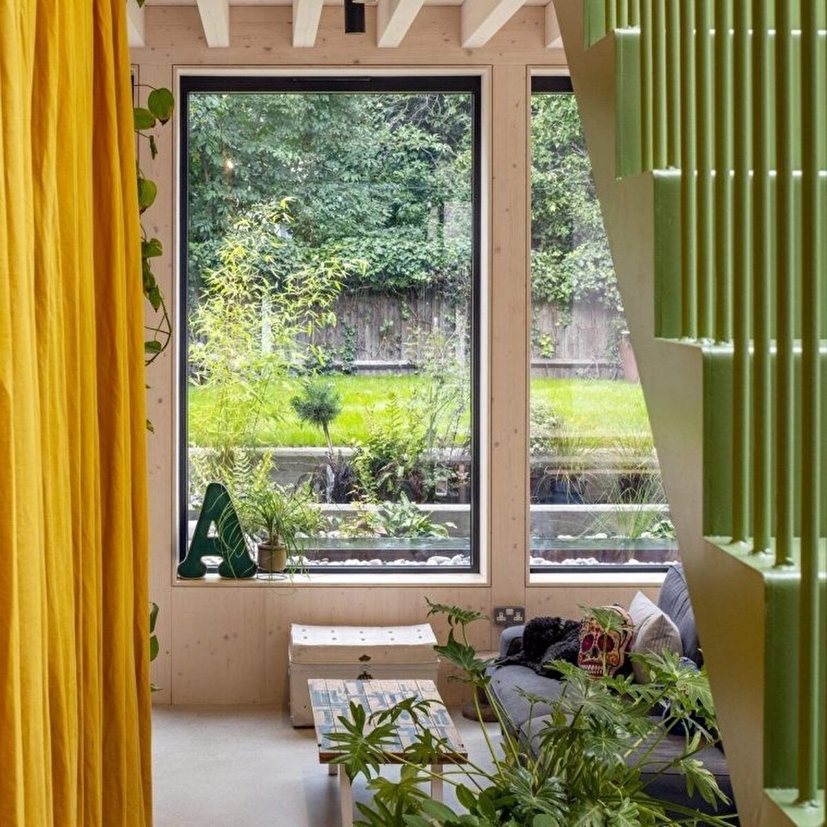 Hayhurst and Co. tarafından tasarlanan, düşük maliyetli ve düşük enerjili bir aile evi olan Green House, Tottenham'daki Clyde Sirki Koruma Alanı'ndaki arka şeritte yer alıyor.