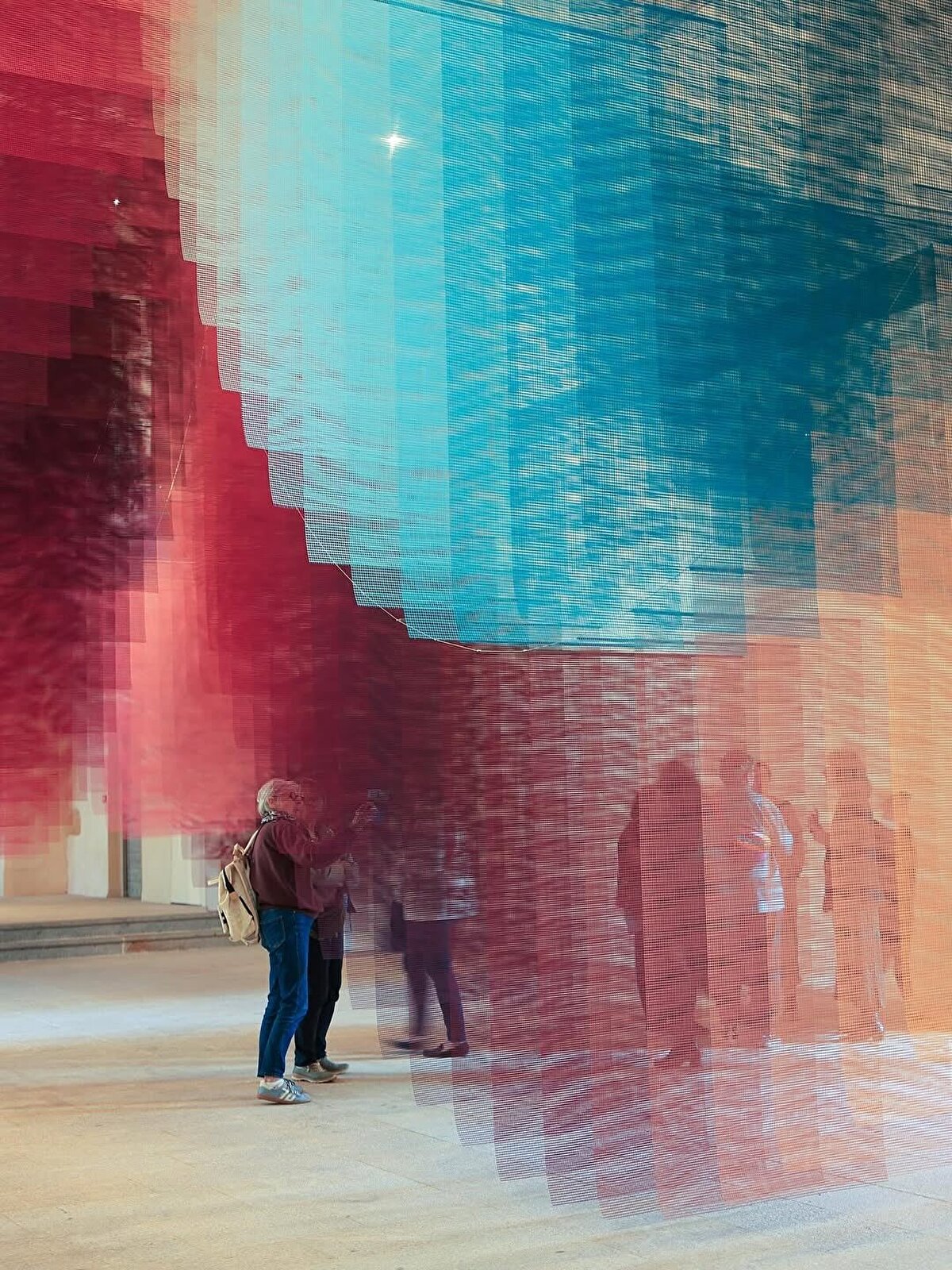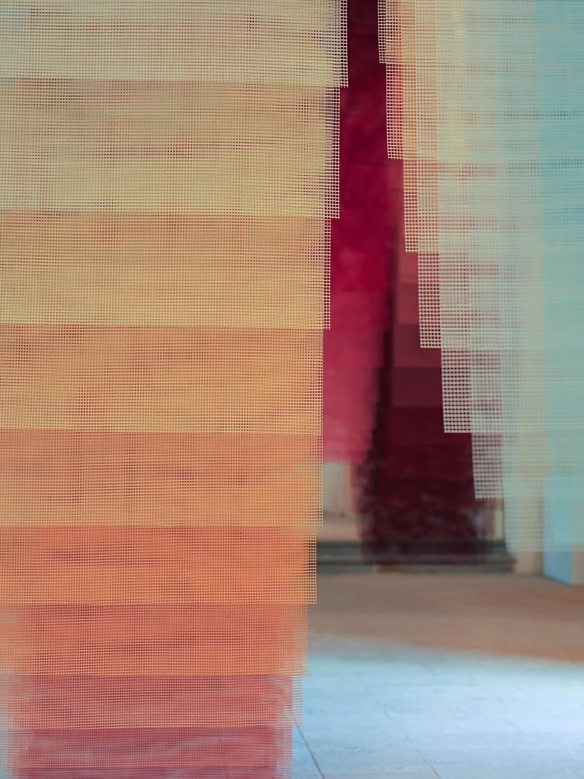 As visitors pass through the panels, they experience the space anew with each step, encountering different angles, depths, and effects of transparency. The work thus offers a simple yet effective suggestion of how space can be transformed perceptually.
