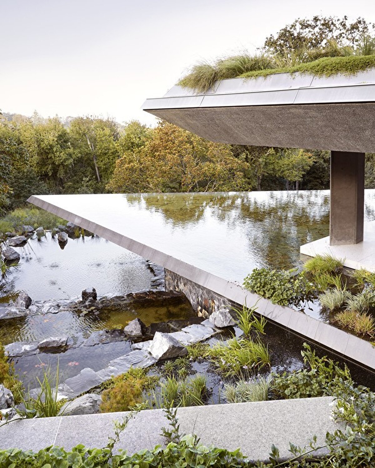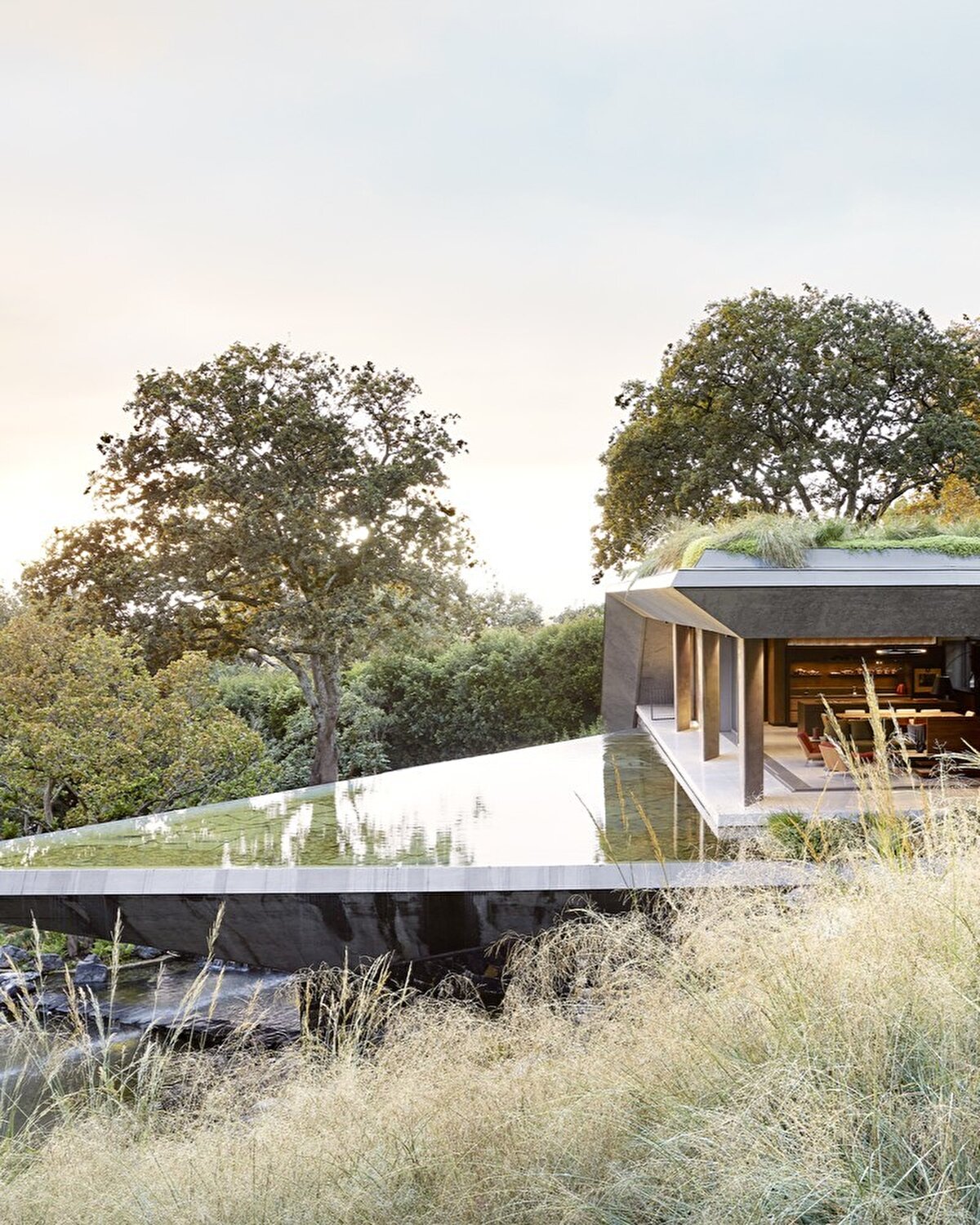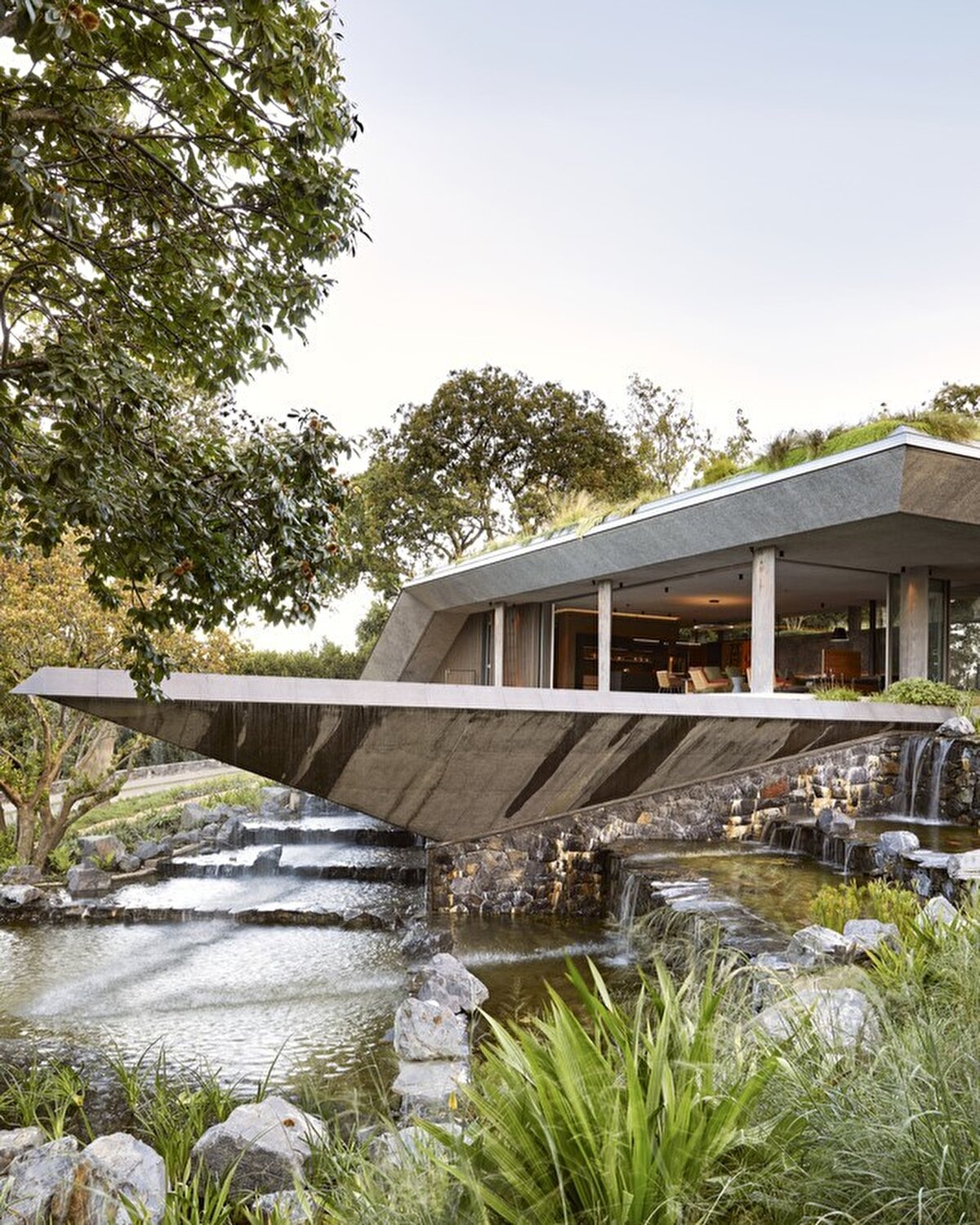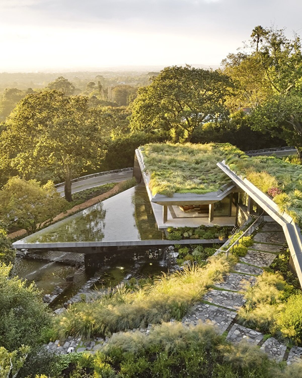 Eğime oturan yeşil çatılı yapı: The Pavilion House