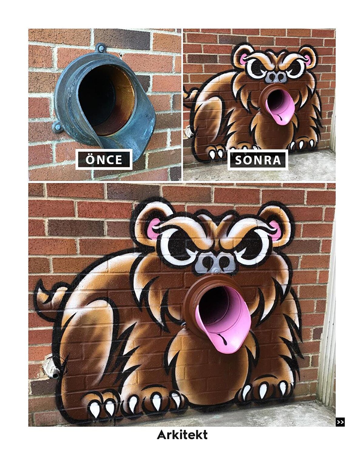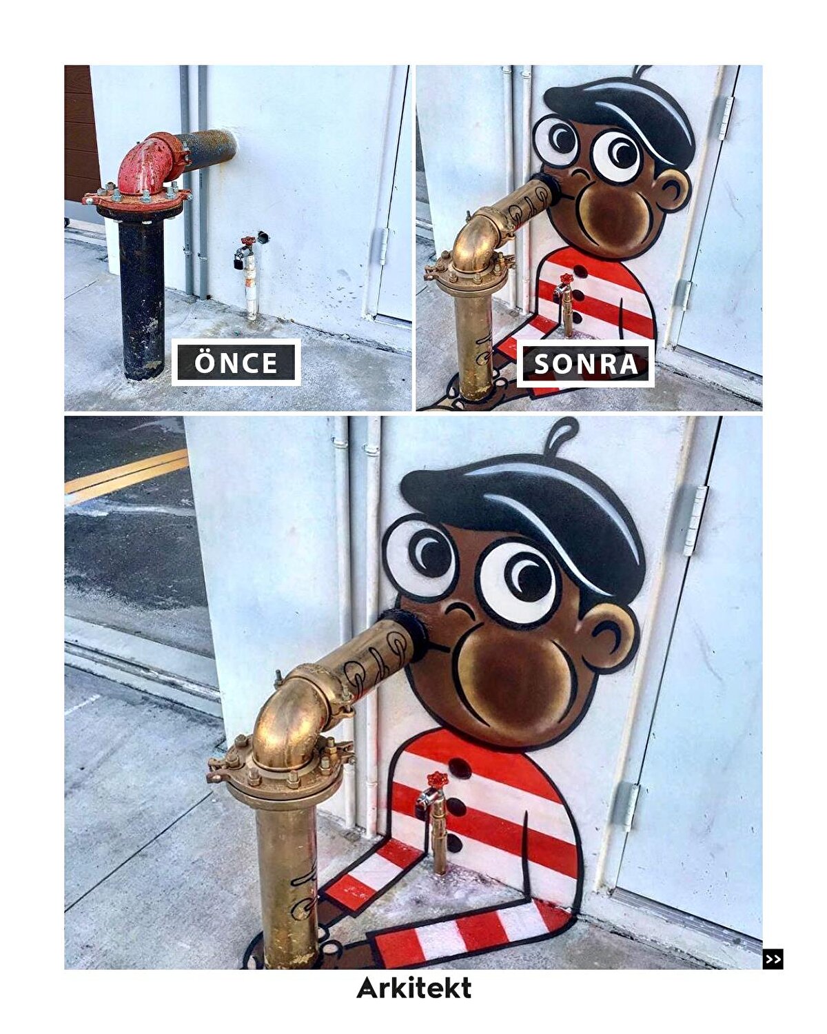 Borudan rögar kapağına, havalandırmadan su borusuna yapıların ve sokakların göze çarpan kısımlarını bambaşka dünyalara dönüştüren bir sanatçı: @TomBobNYC