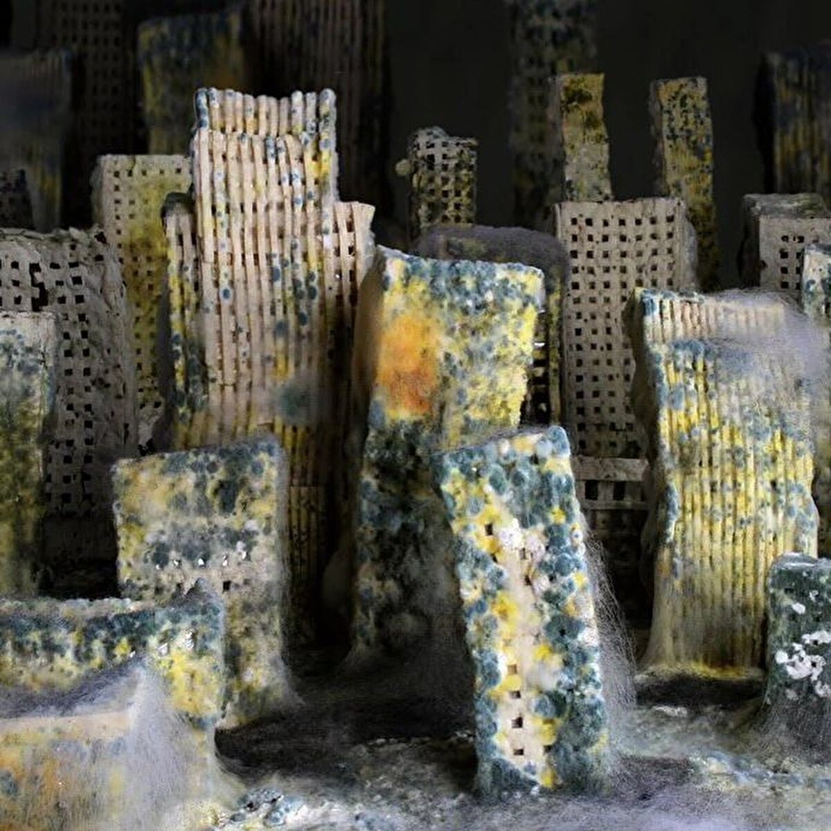 Artist and Scenographer Johanna Mårtensson imagined the decay of humanity, inspired by an article that predicted the regeneration of the earth despite human influence. In 2009 she created the work "bread city" in Stockholm and photographed its daily decay for six months.