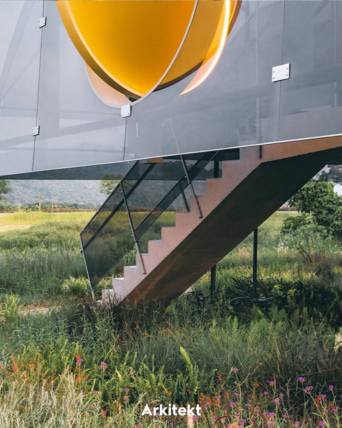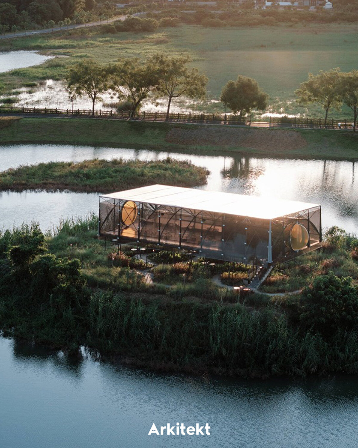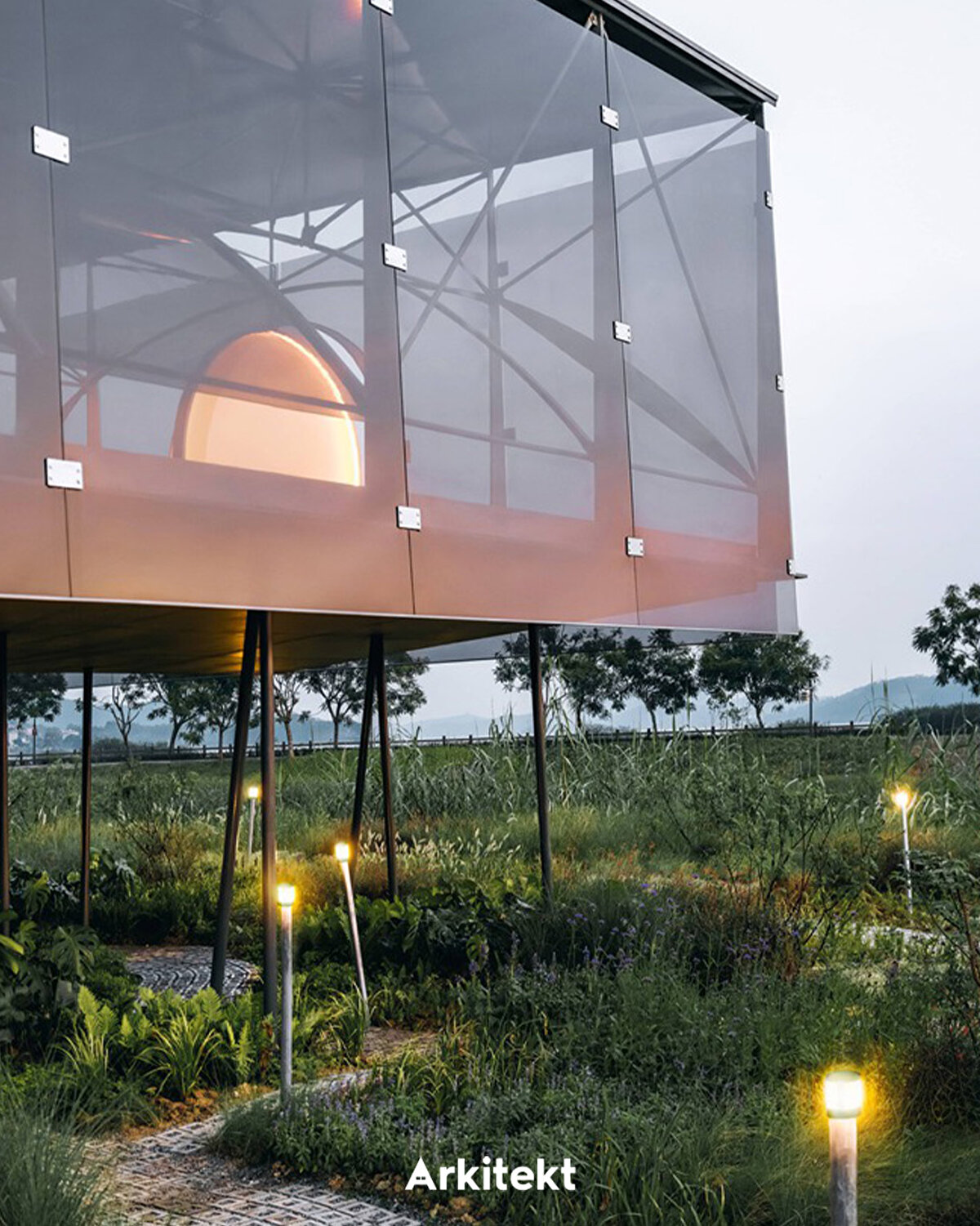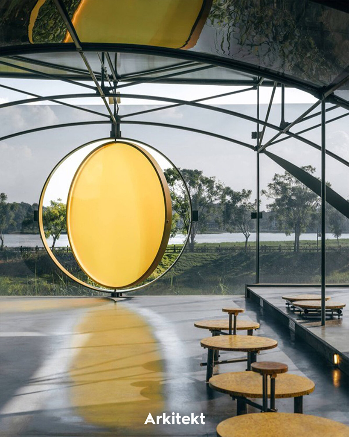Converted from an old greenhouse, the Moon Pavilion stands out with its semi-transparent shell