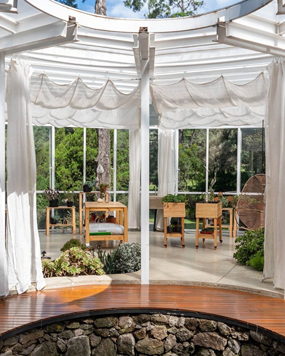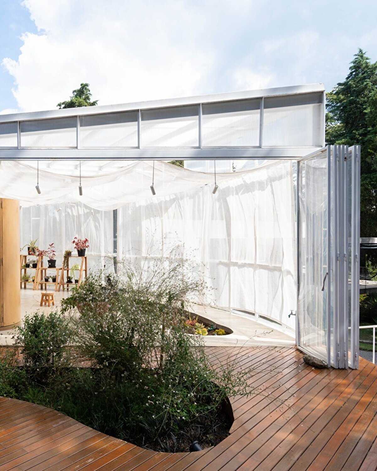 Yapım sürecinde mevcut betonarme duvarlar temizleniyor, yapı zemini olarak kaya platform korunuyor. Hafif çelik strüktürün kullanımı, yapıya hem dayanıklılık hem de geçirgenlik kazandırıyor. Polikarbonat çatı, gün ışığını filtreleyerek bitki gelişimi için uygun iç ortam koşulları oluşturmayı amaçlıyor. Bu malzeme tercihleri, yapının çevreye olan etkisini sınırlı tutacak biçimde belirleniyor.
