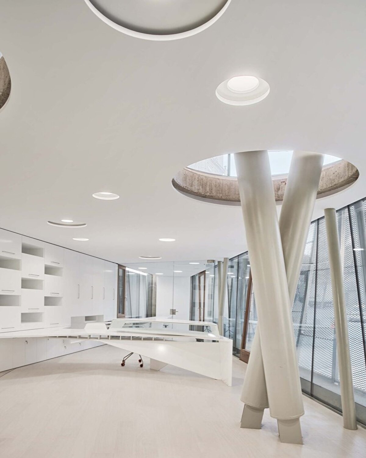Yeni erişimler projesi, salona ve müzenin sergi katlarına yönelik yeni alanları içeriyor. Eski kilisenin bölme duvarının önüne yerleştirilen bu hacimler, binanın yeni cephesine uyum sağlarken eski kilisenin izlerini de gözler önüne seriyor. Bu yeni hacimler paslanmaz çelik ve alüminyum kaplı beton yapıdan inşa ediliyor.