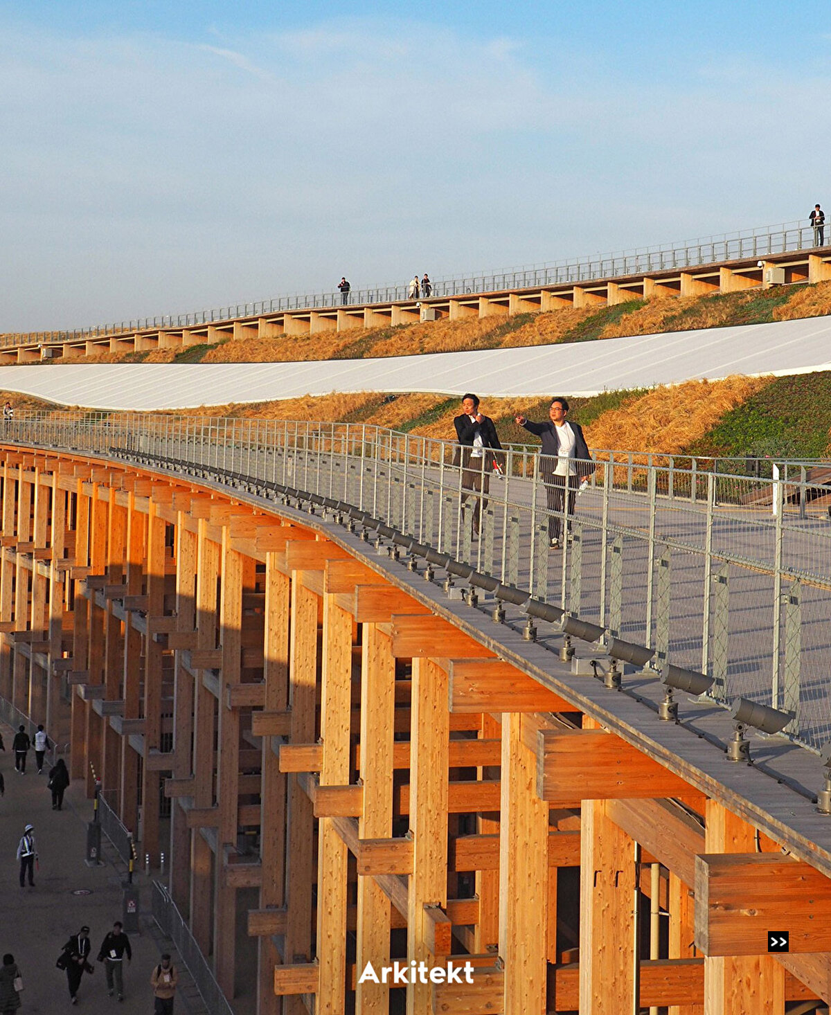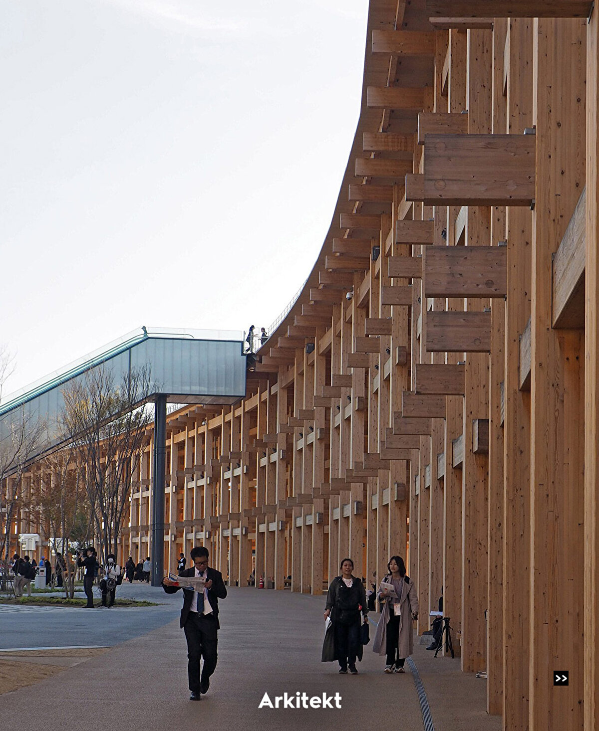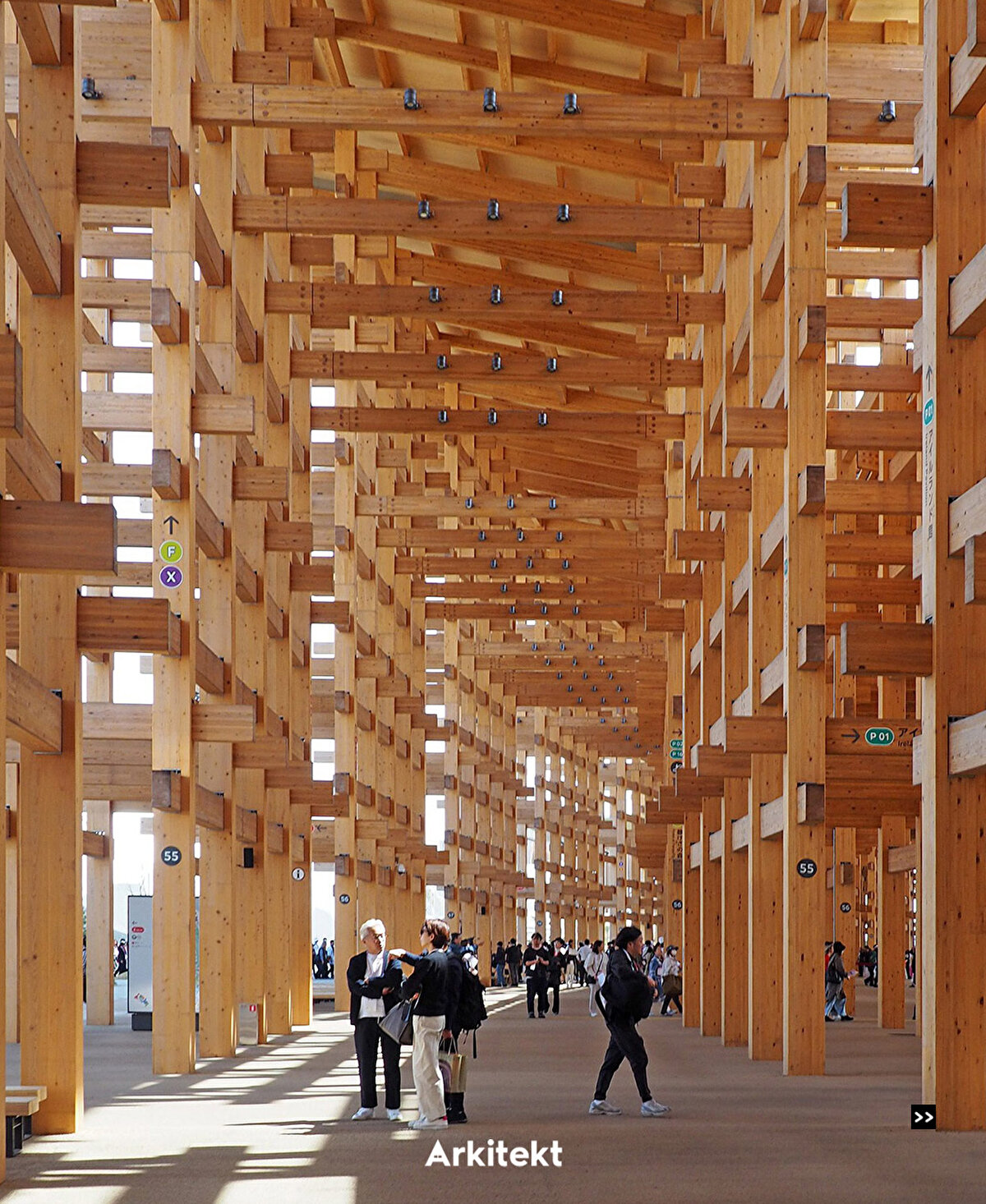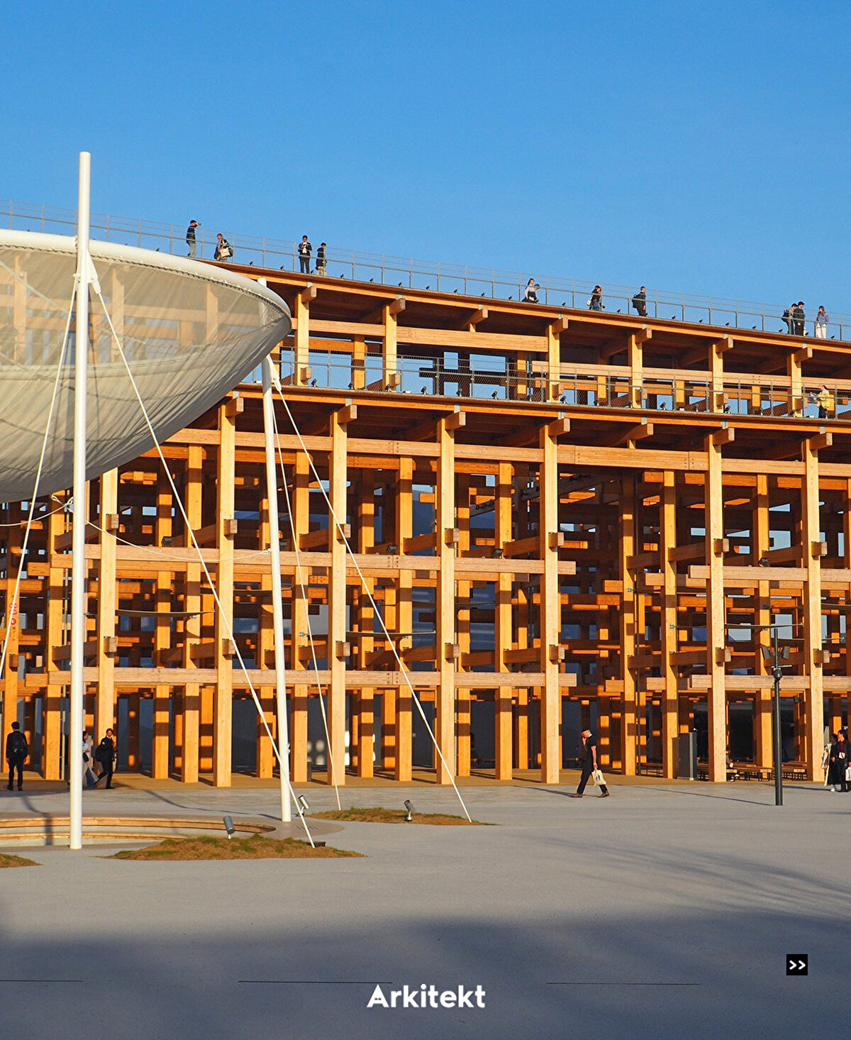 Expo 2025, centered around the theme “Designing Future Society for Our Lives," is taking place on Yumeshima, an artificial island in Osaka. At the heart of the site, the Grand Ring, designed by Sou Fujimoto, forms the Expo's main circulation route with a circumference of approximately 2 kilometers. Recognized by the Guinness World Records as “the world's largest wooden architectural structure," the ring is constructed with a modular and dismantlable wooden system. Traditional Japanese joinery techniques are used alongside modern construction methods. The elevated circulation route, called the Ring Skywalk, is positioned 12 meters above the ground, offering visitors views of both the Expo site and Osaka Bay. Around 70% of the timber used is Japanese cedar and cypress, forming the main structure. National pavilions, including those of Germany, Indonesia, and the Philippines, are arranged within the Grand Ring's layout.