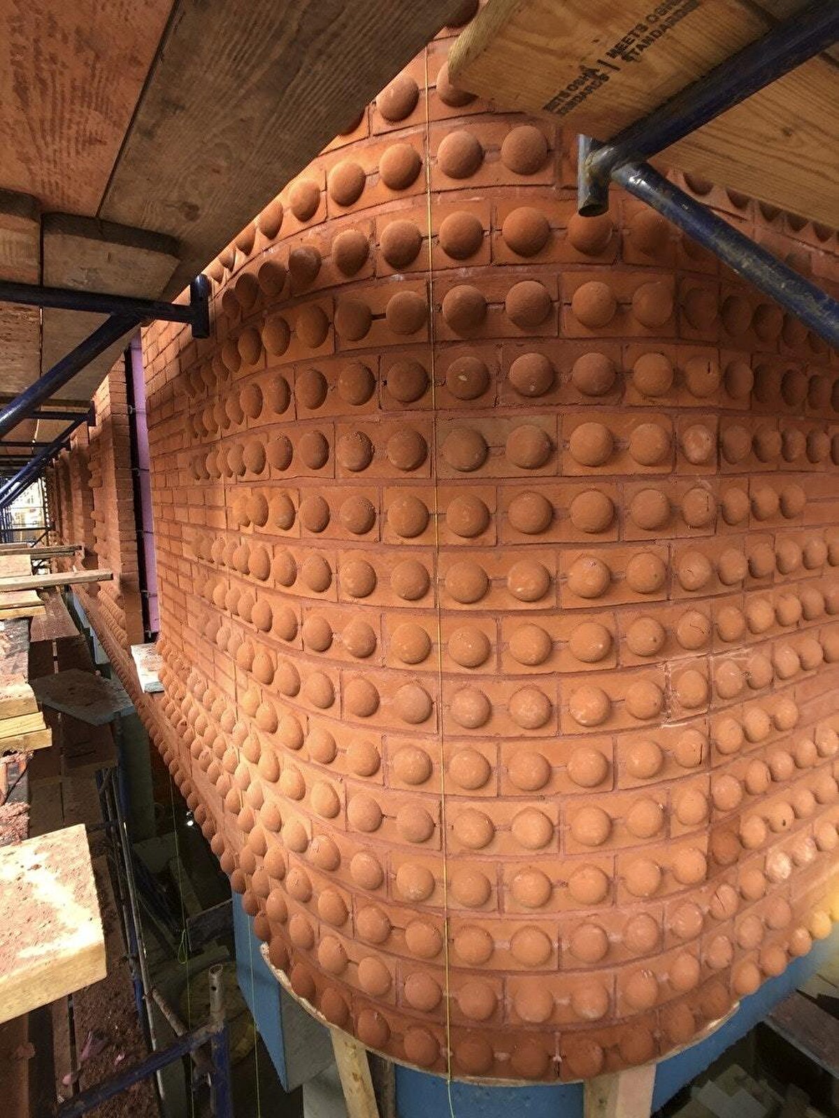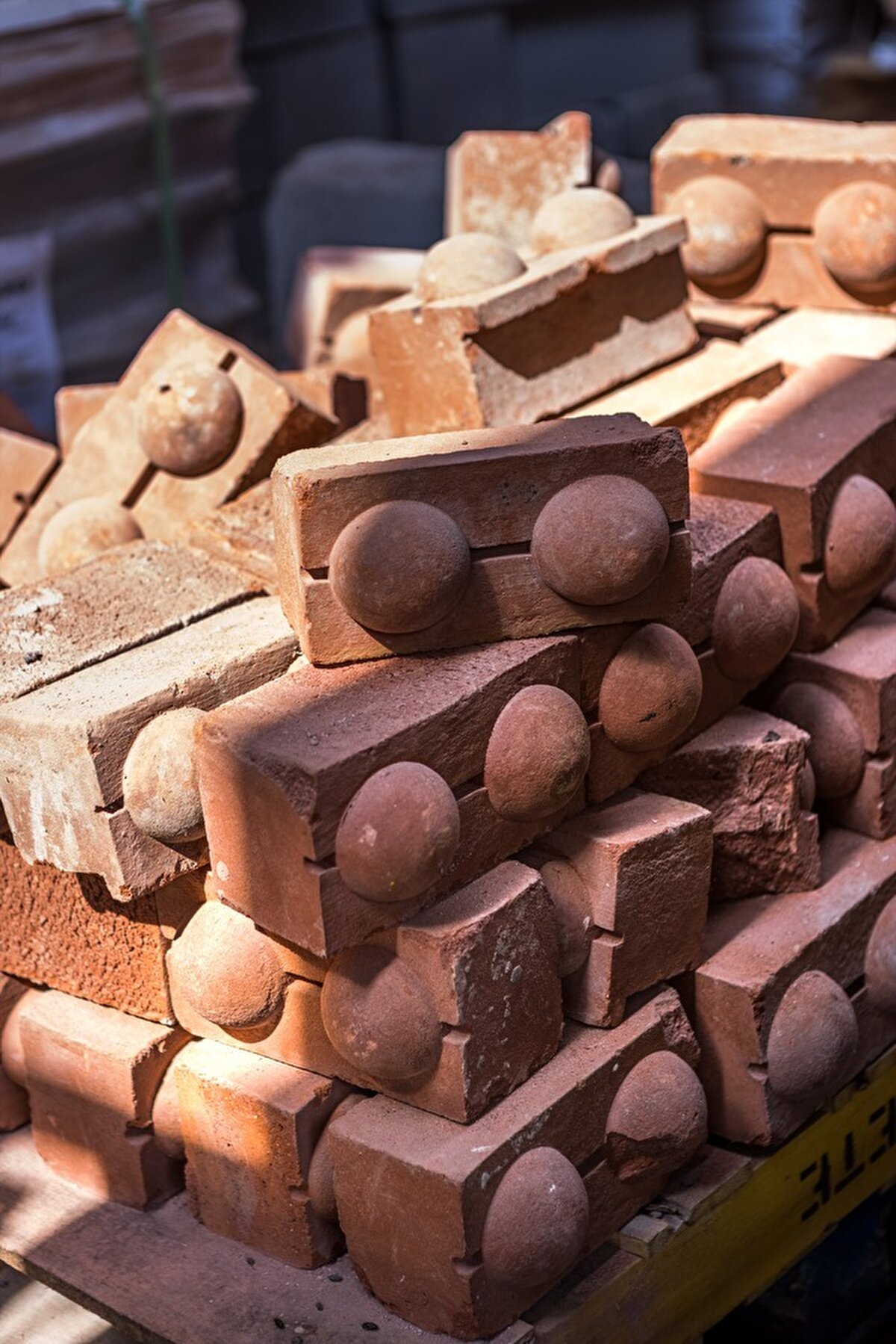 Tasarım, farklı desen veya tuğla işçiliğine sahip bir taban, orta ve üst kısımdan oluşuyor. Yapının tabanında tuğlalar yatay şeritler halinde dizilirken, orta ve üst seviyelerde, kemerli ve alınlıklı pencerelerin yapısını taklit edecek şekilde yerleştiriliyor.