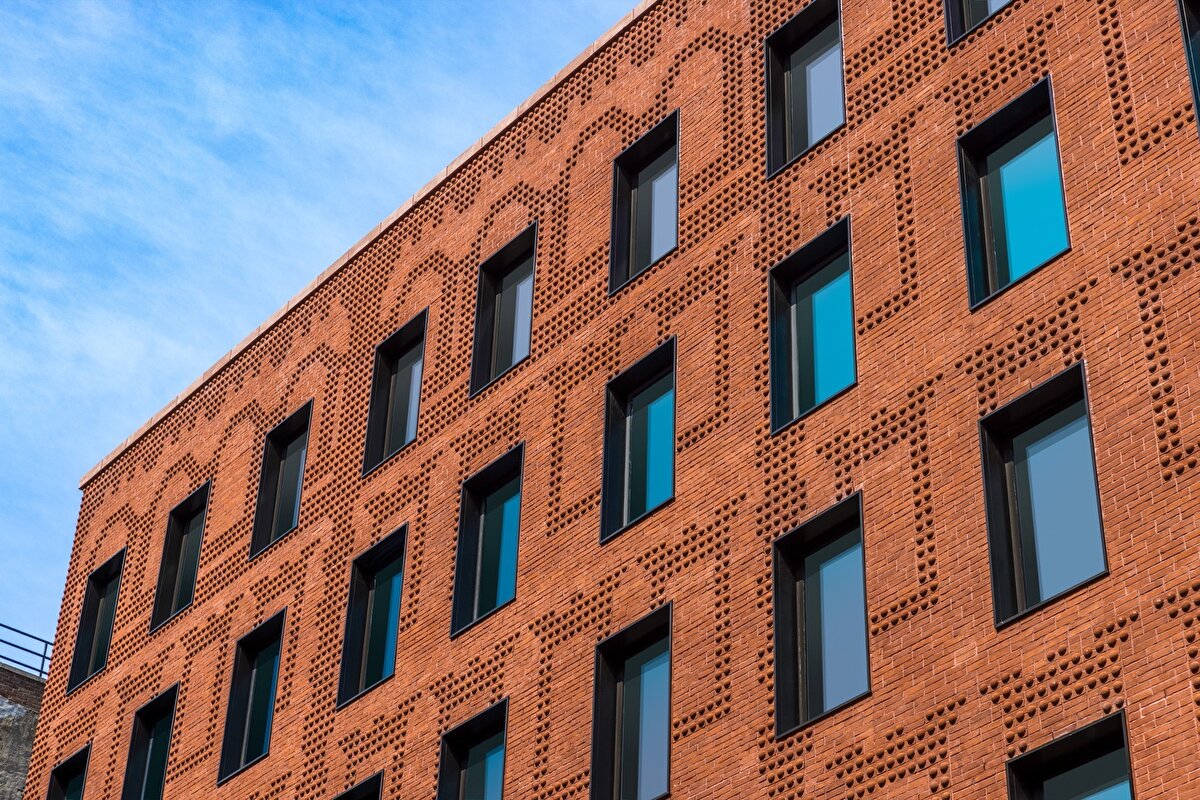 Grand Mulberry'nin yapımında, İtalyan tarzı bir cephe yanılsaması oluşturmak amacıyla özel şekilli kubbe tuğlaları tasarlanıyor. Glen-Gery tuğlaları elle kalıplanıyor. Elle kalıplanmış tuğlaların kullanımı geleneksel bir seçim olsa da, proje için özel olarak geliştirilen benzersiz şekil ve desen, taze ve modern bir cephe tasarımıyla sonuçlanıyor.