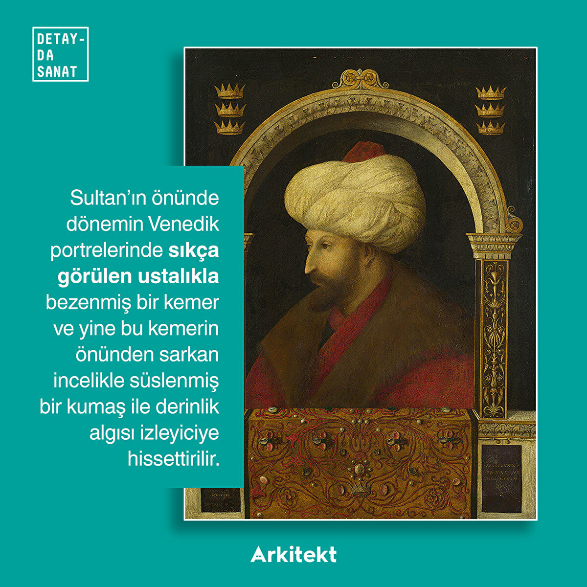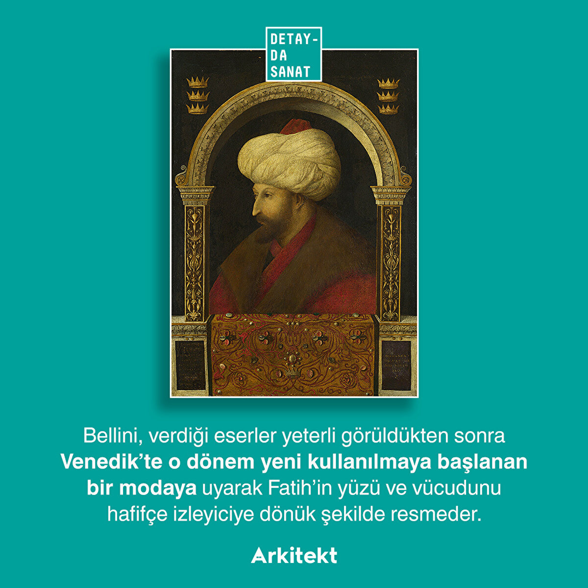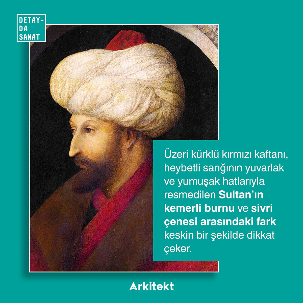 Halil İnalcık tarafından “Kendini Roma Kayseri (Kayser-i Rum) ilan eden Fatih Sultan Mehmed de sarayında ünlü hümanistleri bulunduruyor, onlara Roma tarihini okutuyor, Rönesans ressamlarından Venedikli ressam Gentile Bellini'yi davet edip tablolar yaptırıyor, aynı zamanda Bizanslı Kritovulos'a kendi tarihini yazdırıyordu. Fatih kuşatmadan önce İstanbul'dan İtalya'ya kaçmış olan Rum bilginlerine de, İstanbul'a geri gelmeleri için davette bulunuyordu." şeklinde anlatılan, Batılıların Büyük Türk diye adlandırdığı Fatih Sultan Mehmet ve Bellini tarafından yapılan portresi, bu hafta Detayda Sanat'ta!