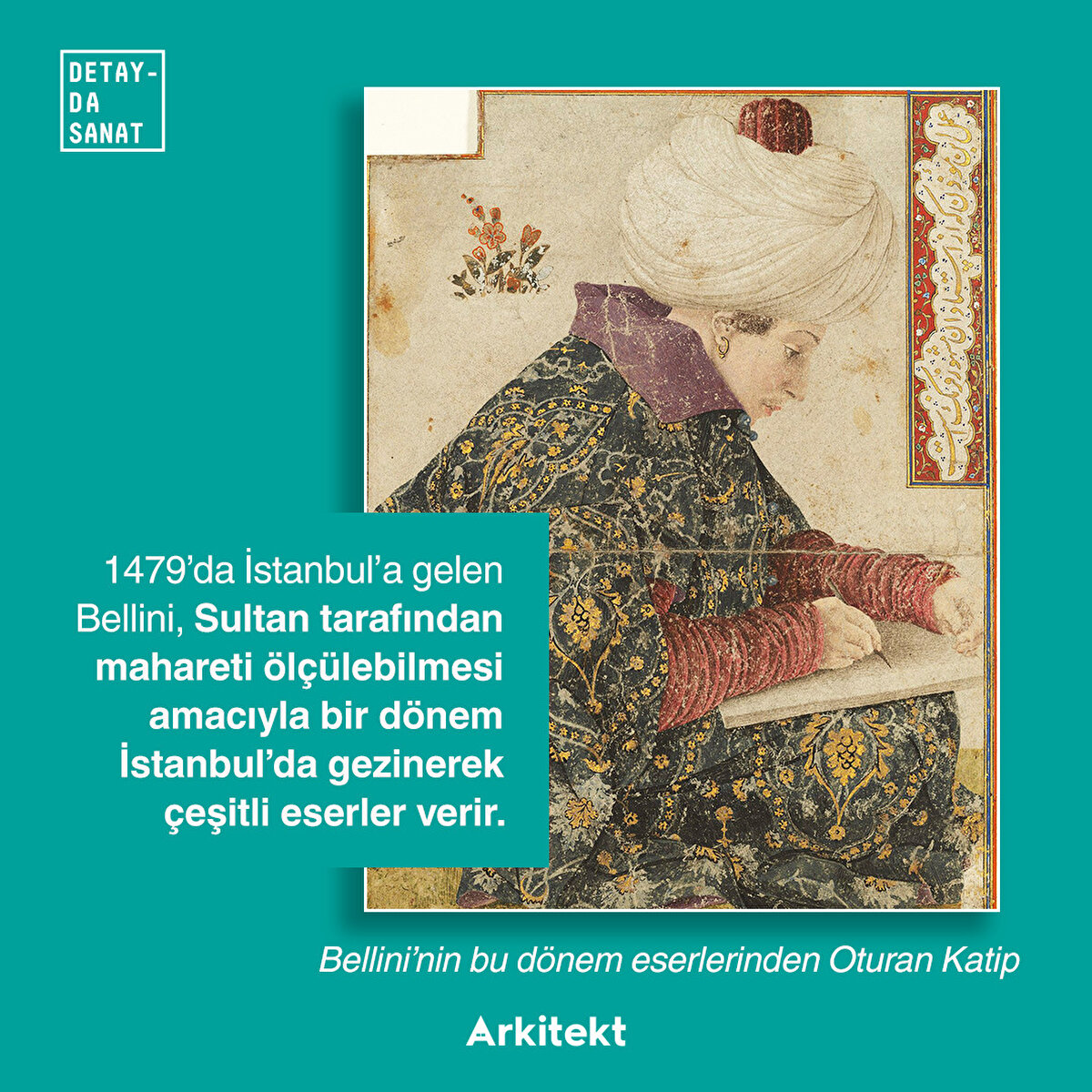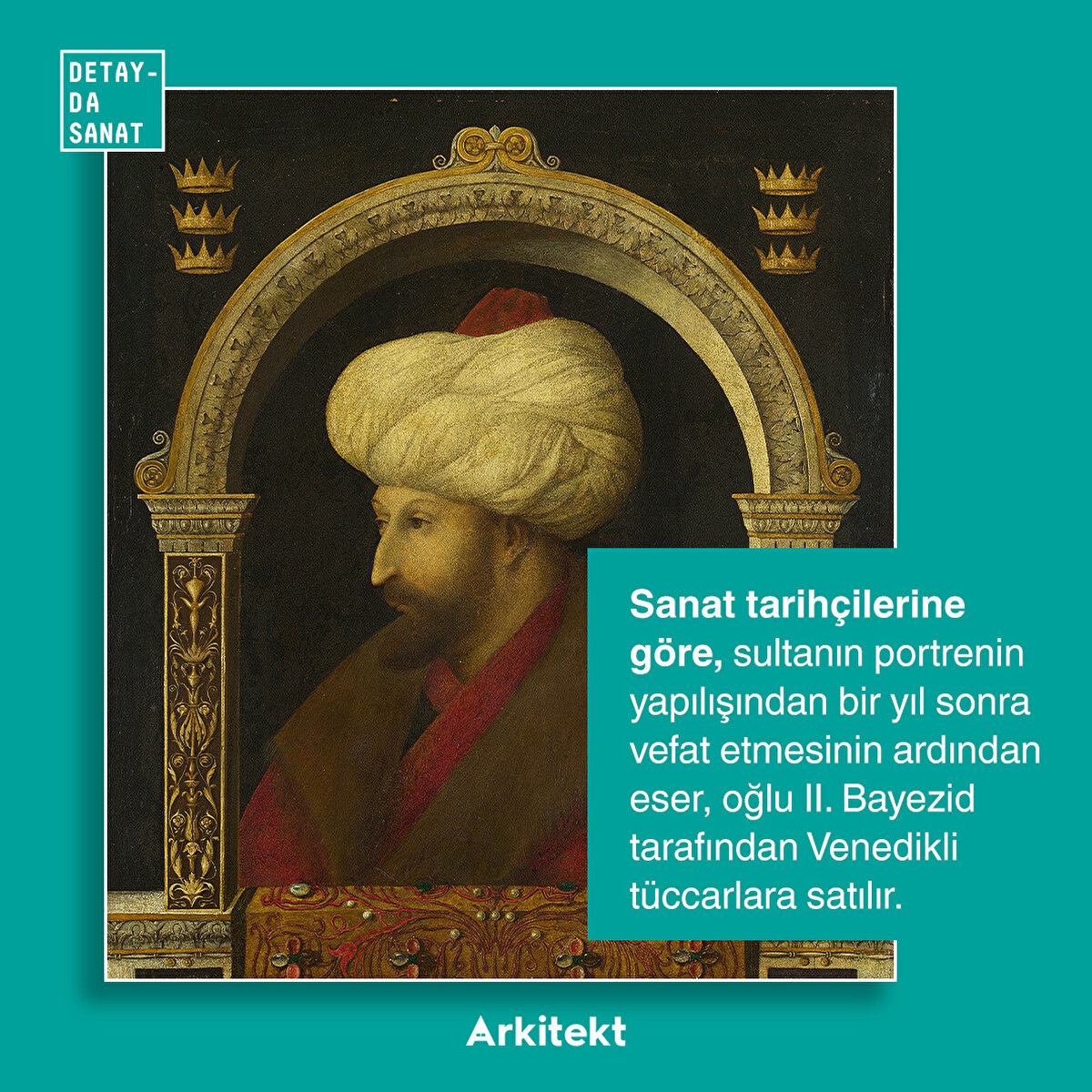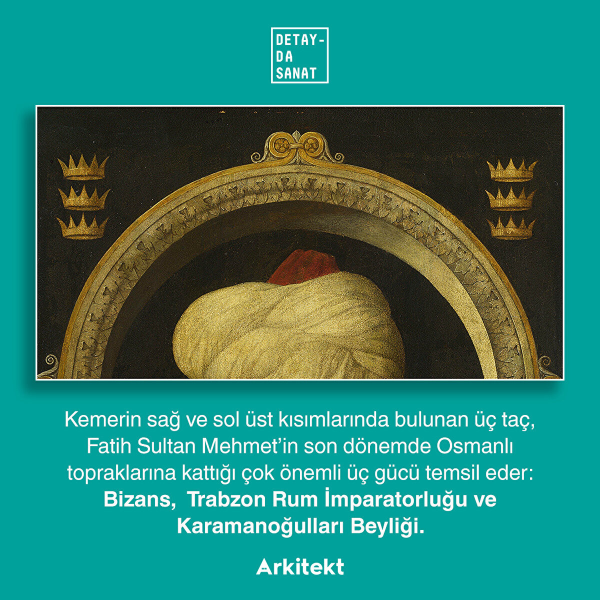 Halil İnalcık tarafından “Kendini Roma Kayseri (Kayser-i Rum) ilan eden Fatih Sultan Mehmed de sarayında ünlü hümanistleri bulunduruyor, onlara Roma tarihini okutuyor, Rönesans ressamlarından Venedikli ressam Gentile Bellini'yi davet edip tablolar yaptırıyor, aynı zamanda Bizanslı Kritovulos'a kendi tarihini yazdırıyordu. Fatih kuşatmadan önce İstanbul'dan İtalya'ya kaçmış olan Rum bilginlerine de, İstanbul'a geri gelmeleri için davette bulunuyordu." şeklinde anlatılan, Batılıların Büyük Türk diye adlandırdığı Fatih Sultan Mehmet ve Bellini tarafından yapılan portresi, bu hafta Detayda Sanat'ta!