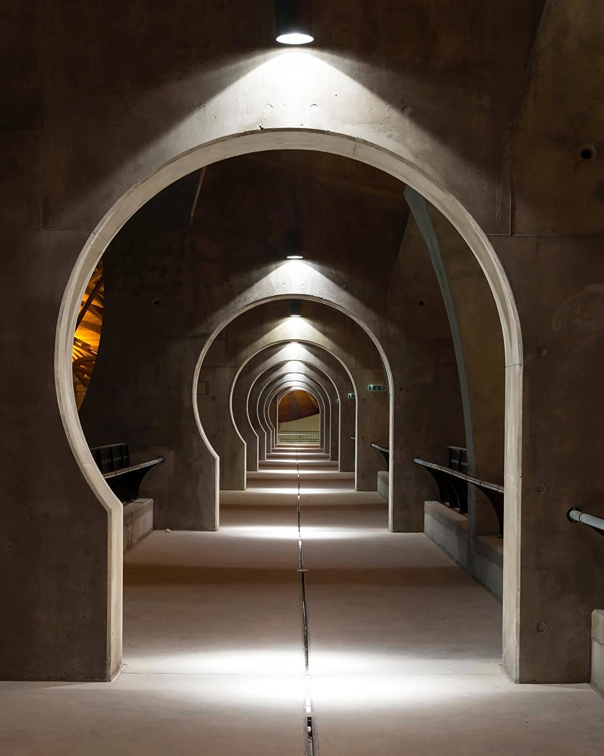 Arena, 12.000 metrekareden fazla bir alan kaplıyor. Bu geniş alana rağmen arena tasarlanırken birçok noktada farklı çözümlerle alandan tasarruf ediliyor. Kuzey ve güney tarafında yer alan kale arkası tribünleri, bir konsol gibi sahanın üzerinde yükseliyor ve altlarında saha kontrolü için alan bulunuyor. Arenanın oturduğu eğimli topografyadan yararlanılarak üç farklı kattan giriş veriliyor.