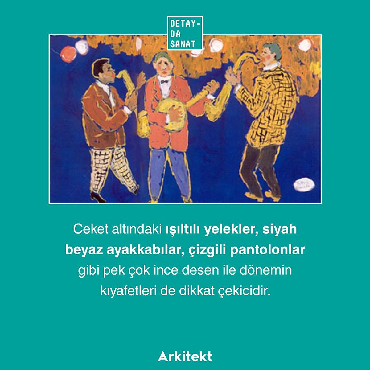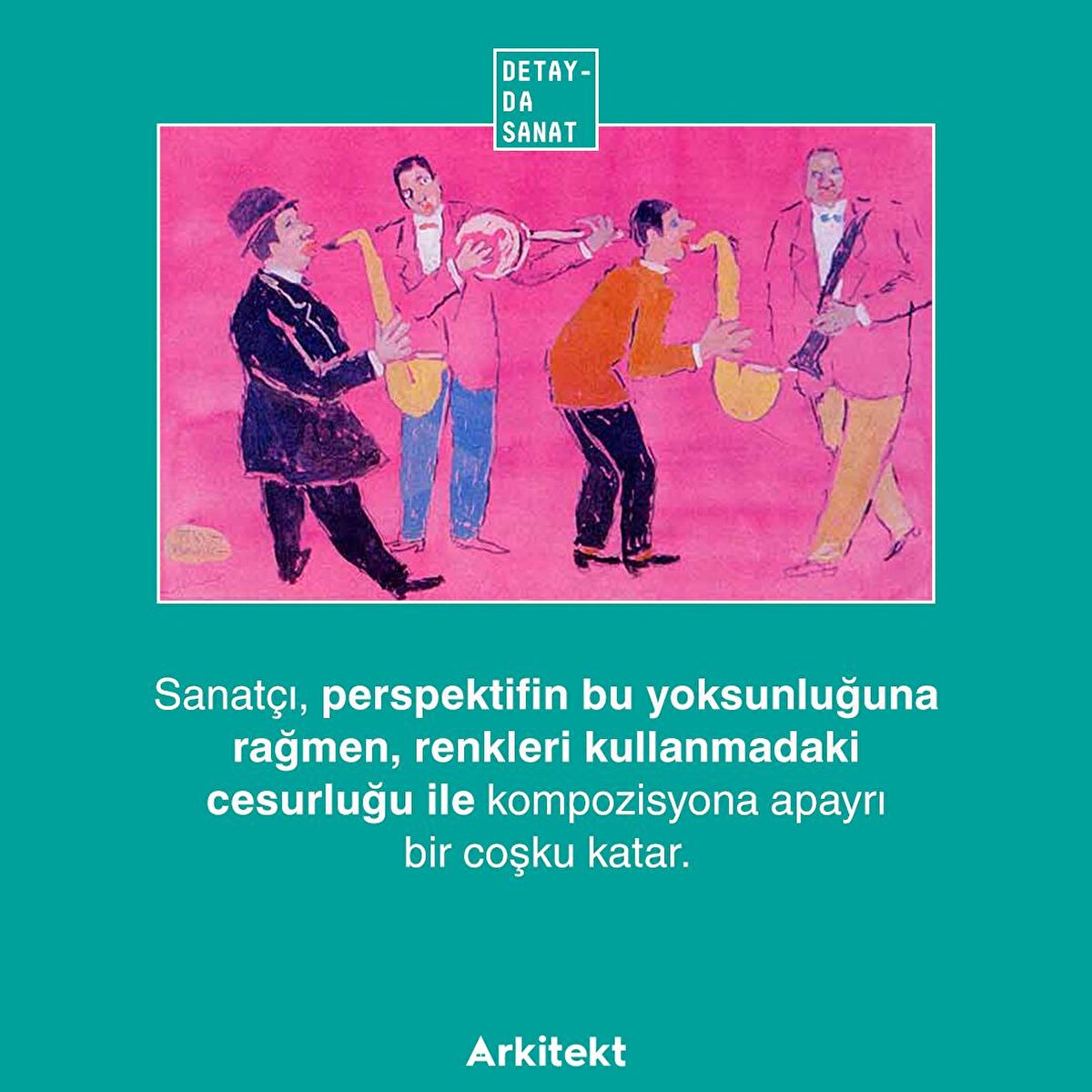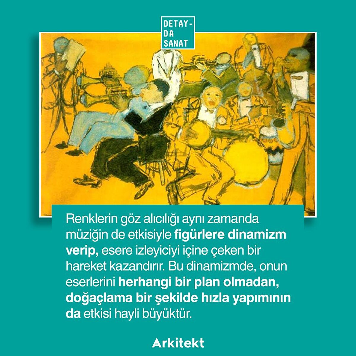 Capcanlı renkleri ve akıp giden hareketleriyle Fikret Mualla'nın cazcıları bu hafta Detayda Sanat'ta.