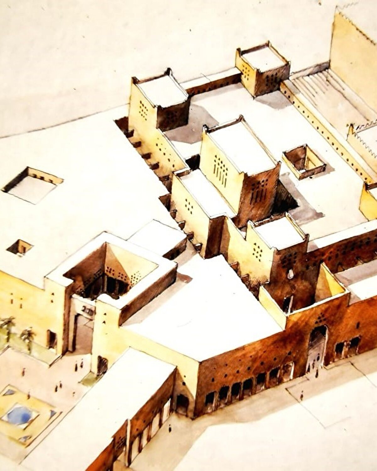 The project, also known as 'Qasr Al Hokm', was won in a competition and the office's approach is based on the idea of revitalizing the center of Riyadh. Strategies include improving the existing streets and seamlessly linking the landscape plans and architectural elements, while identifying the style with the local Najdi architecture. Local approaches are reinterpreted in the theme, spatial organization, detailing, color palette and material selection.
