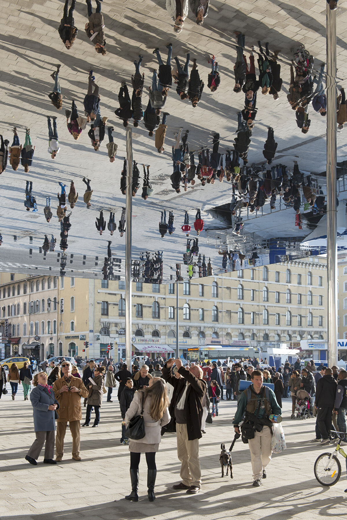 İnce profili destekleyen altı ince sütunla, 46'ya 22 metrelik paslanmaz çelik kanopi, çevredeki hareketi güçlendirip yansıtıyor ve yayaları bu alanda vakit geçirmeye teşvik eden bir manzara oluşturuyor.