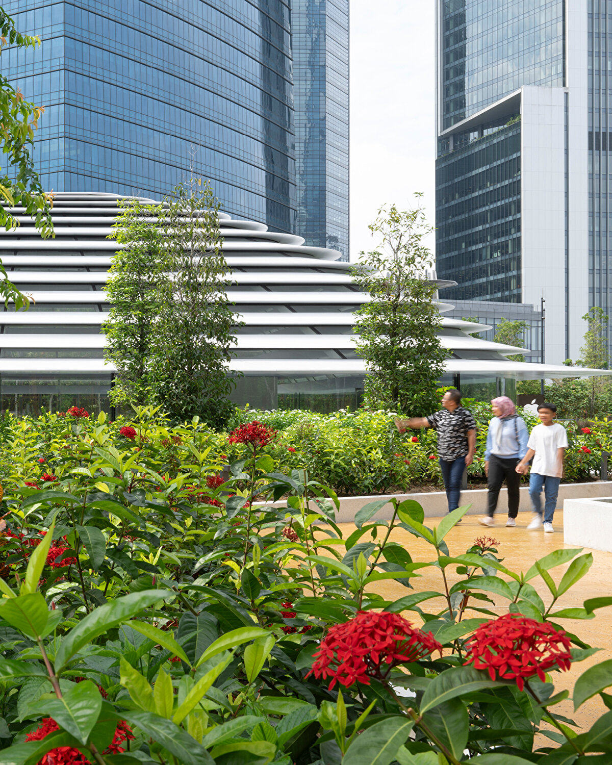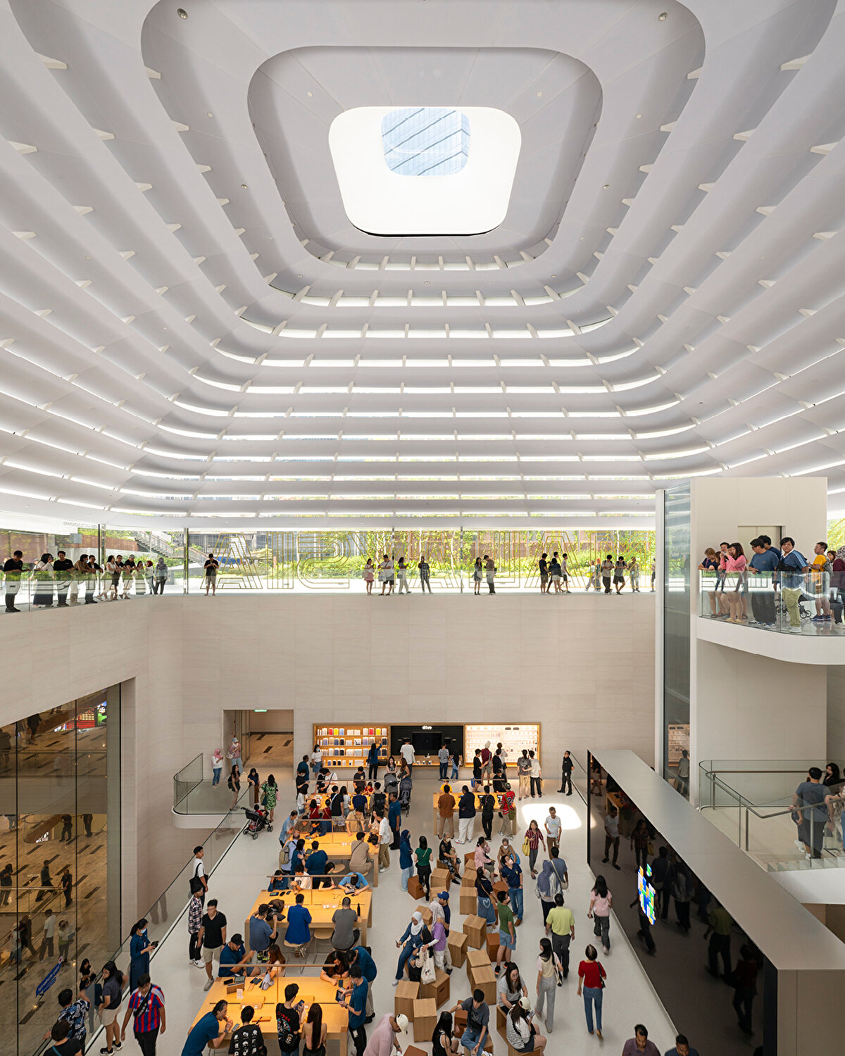Foster + Partners Studio tarafından tasarlanan Apple'ın Malezya'daki ilk perakende mağazası, katmanlı çatısıyla dikkat çekiyor ve TRX'in (Tun Razak Exchange) merkezi bir odak noktası olarak hizmet ediyor.