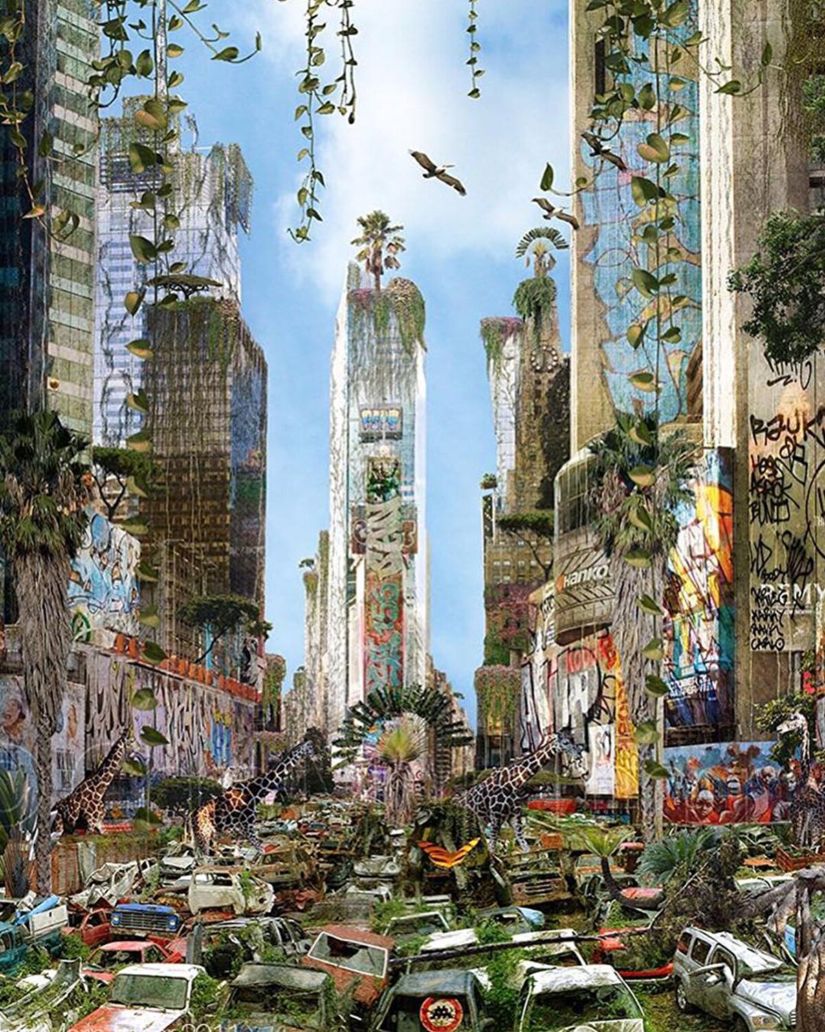 Fotoğraf sanatçısı Chris Morin, 2012'de başlattığı dijital sanat projesiyle; devasa ağaçlar ve vahşi hayvanlarla doğanın ele geçirdiği modern şehirleri görselleştirdi.