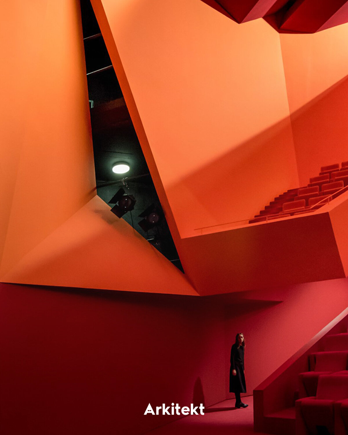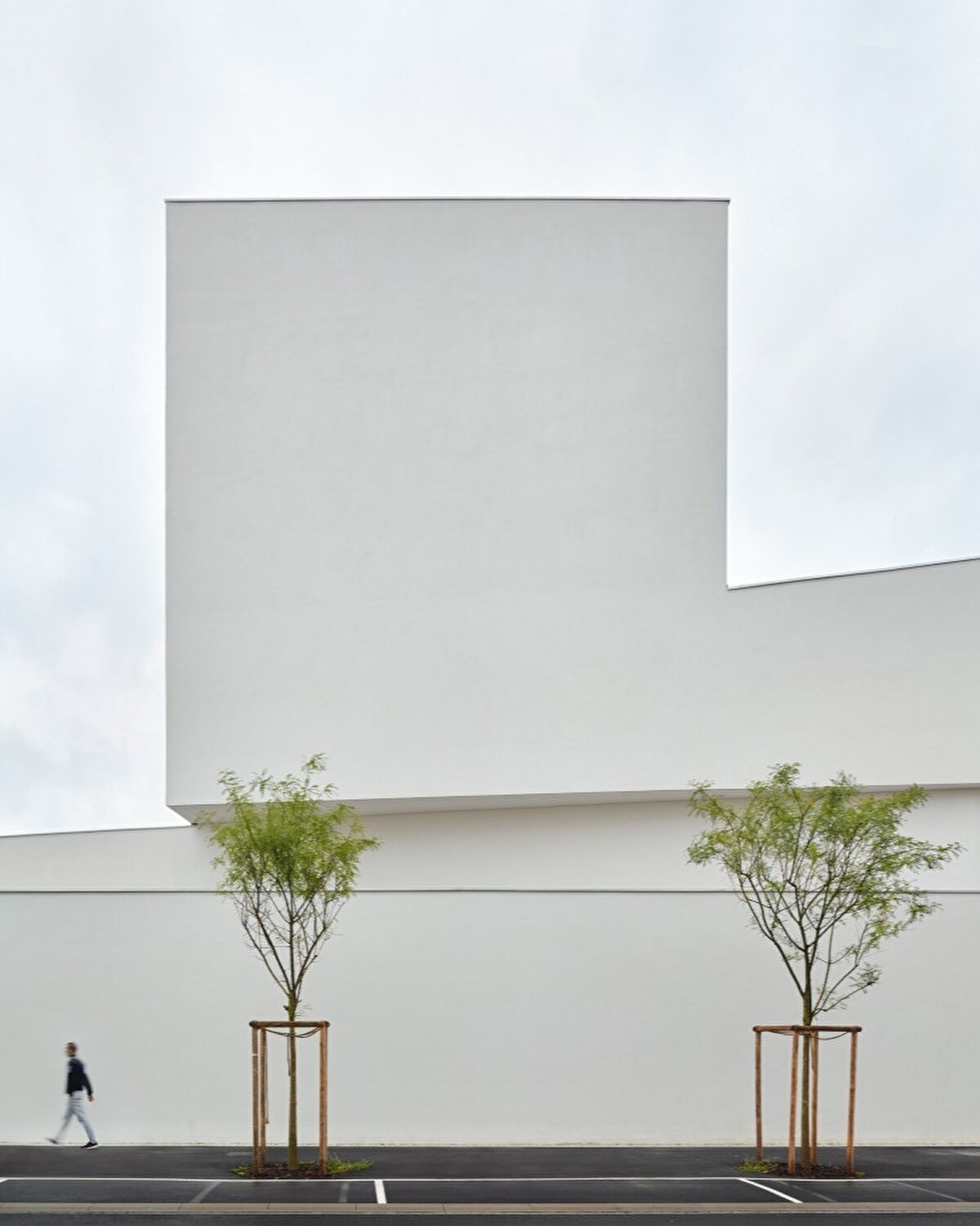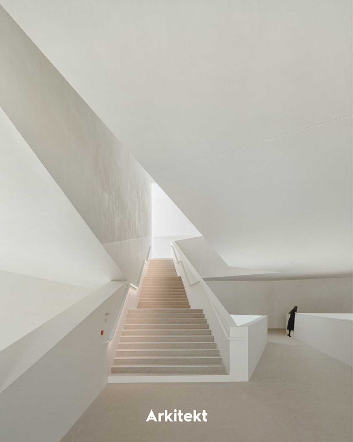 The Théodore Gouvy Theater in France, located in the center of the town of Freyming-Merlebach, forms a new public space alongside the town hall and shopping center. The structure, rising on a plinth, presents the town with a flawless white façade. The foyer, with its transparent surfaces defining the entrance axis, creates a vertical spatial arrangement with its intertwined staircases. The 700-seat auditorium adds intensity to the space with its red, pink, and orange tones. The auditorium offers an optimized viewing angle, with the furthest spectator seated only twenty meters from the front of the stage. Natural light highlights various features while revealing the building's shape and dimensions. Consequently, the path leading to the auditorium takes on a grand and theatrical character.