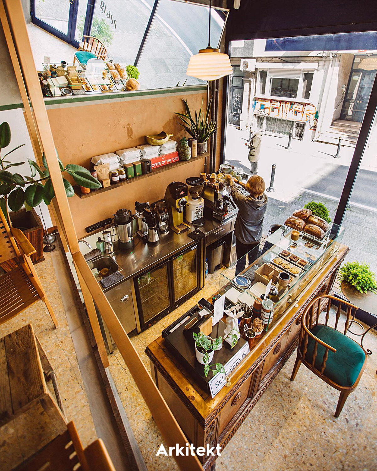 Cemal Süreyya Sokak'ta konumlanan Grass Coffee Bakery, kahve odaklı menüsü ve çeşitli beslenme alternatifleri ile öne çıkıyor. Mekan, nostaljik kahve tonları, lacivert cumbası ve vintage parçalarıyla ziyaretçilerin dikkatini çekiyor.