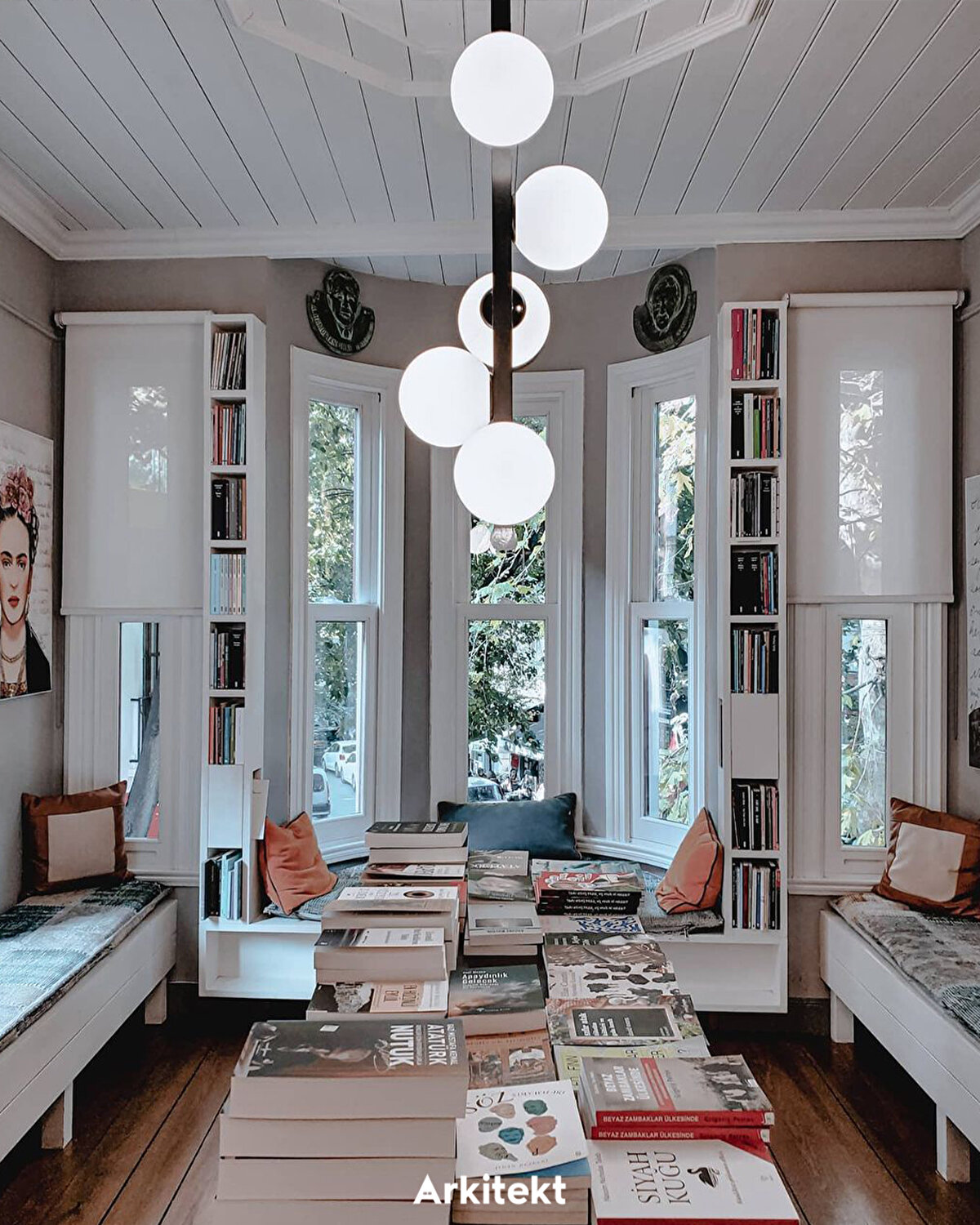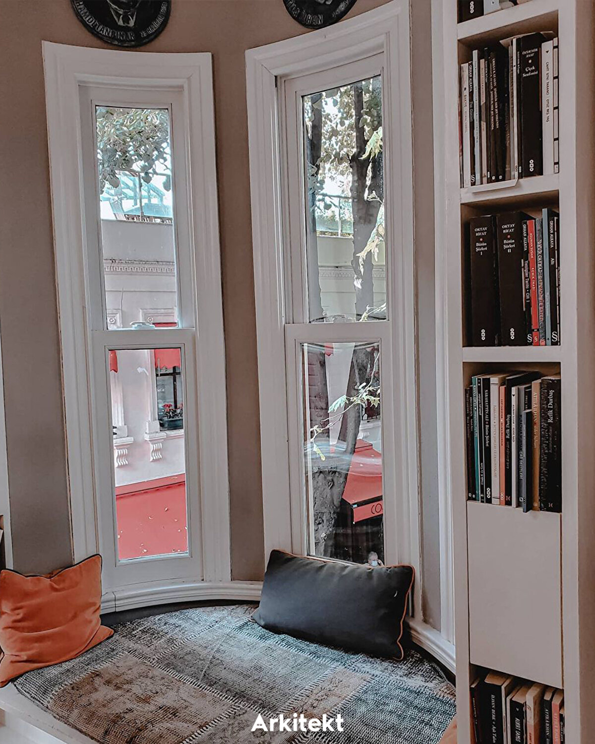 Böylesine ilham verici bir ortamda, cam kenarındaki minderlere oturup bir yandan kitap okurken bir yandan da sizin için hazırlanmış kahvenizi yudumlayabilirsiniz...