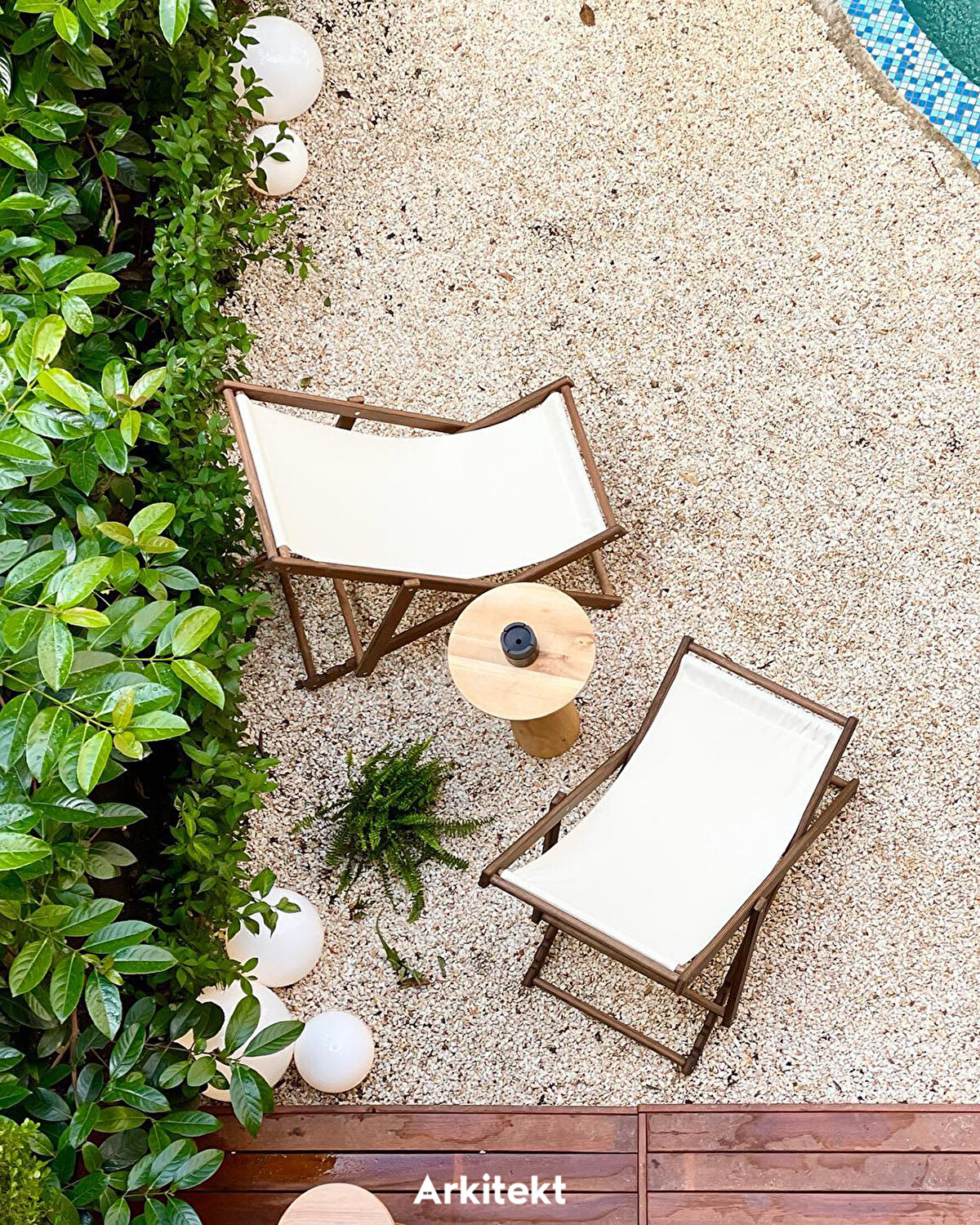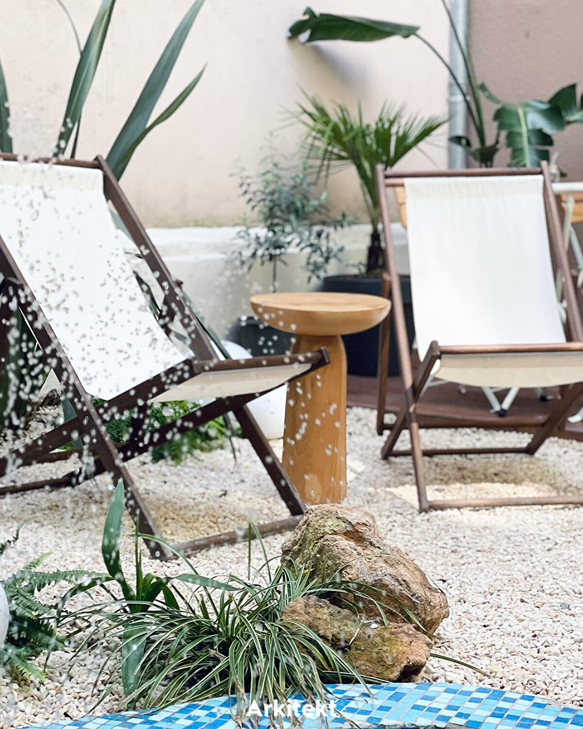 İki küçük oda, servis alanı ve avludan oluşan mekanda rahat ve minimal mobilyalar kullanılıyor.
