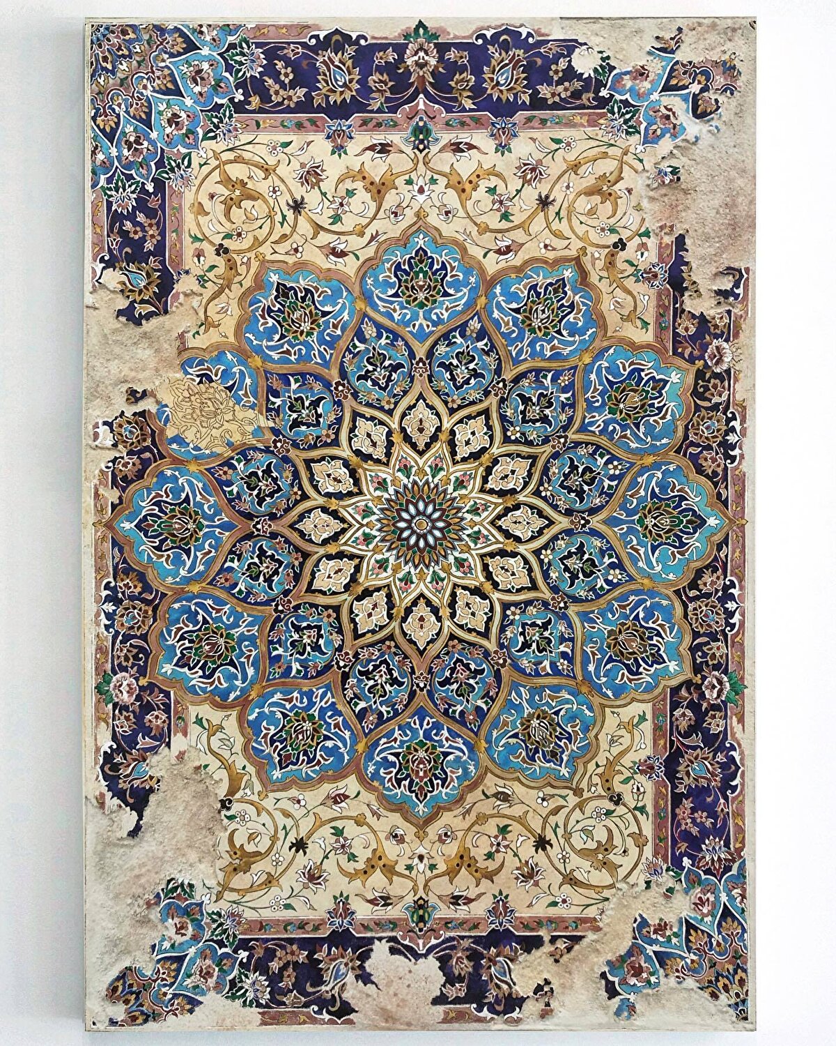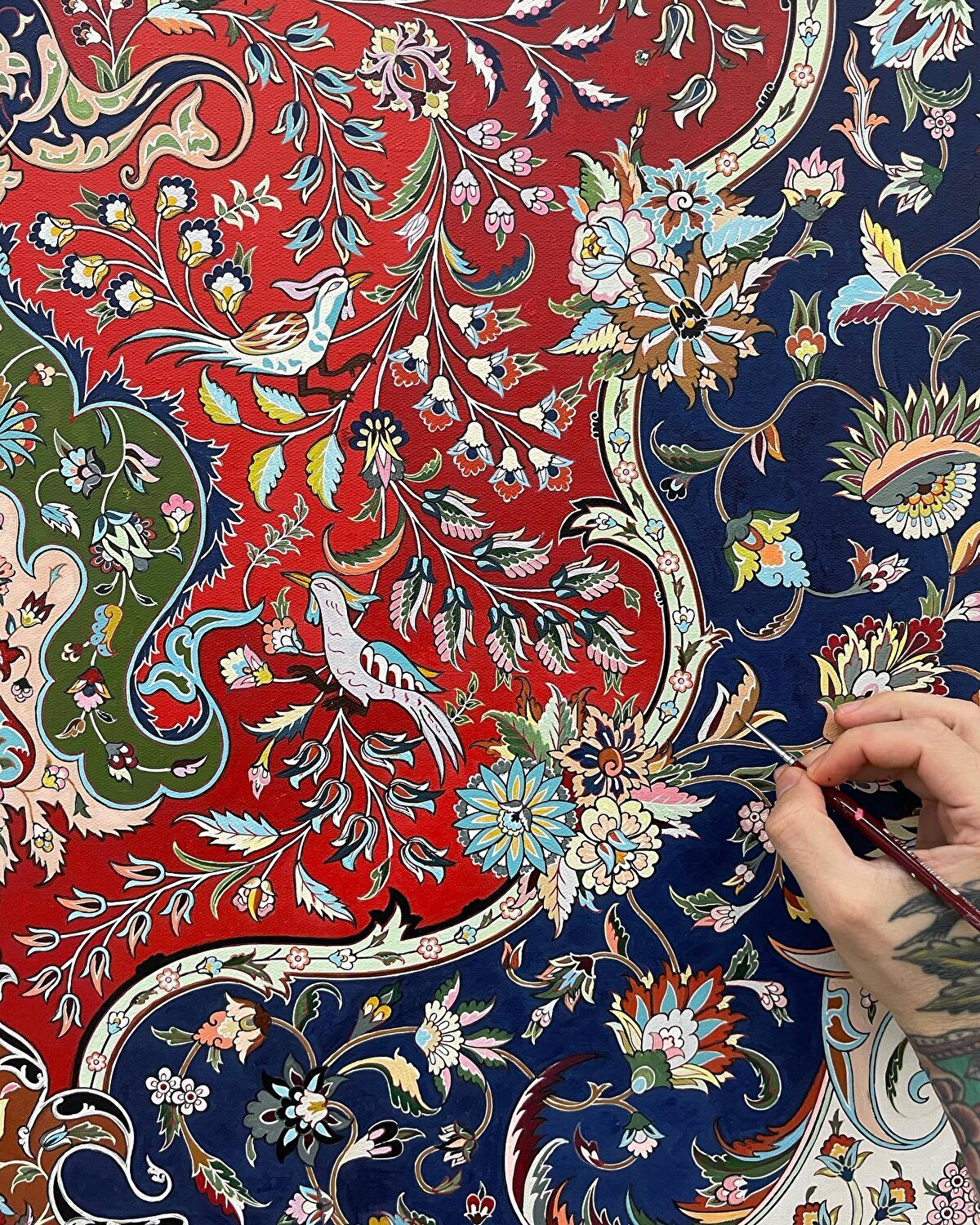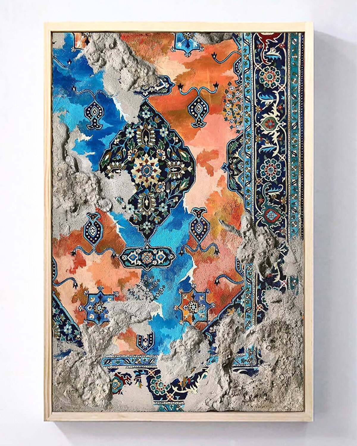 Seife, beton üzerine akrilik boyama tekniği ile mimaride ve geleneksel halılarda kullanılan desenleri farklı boyutlara taşıyor.
