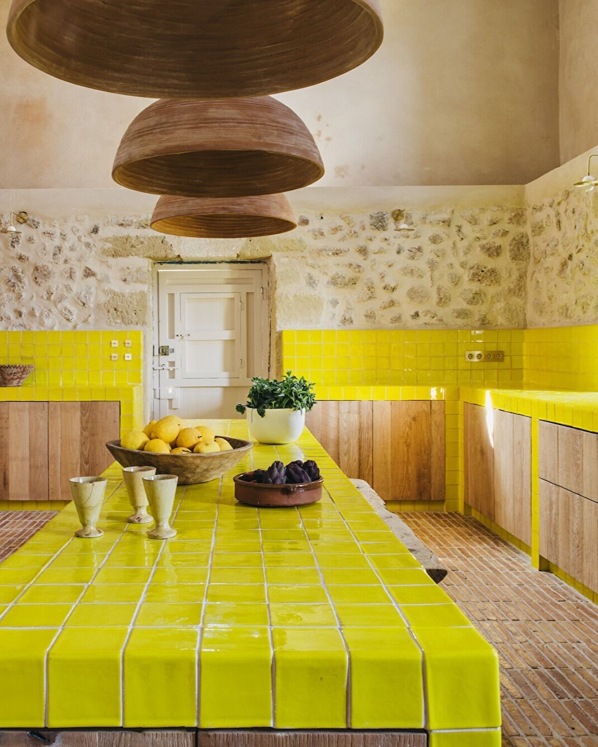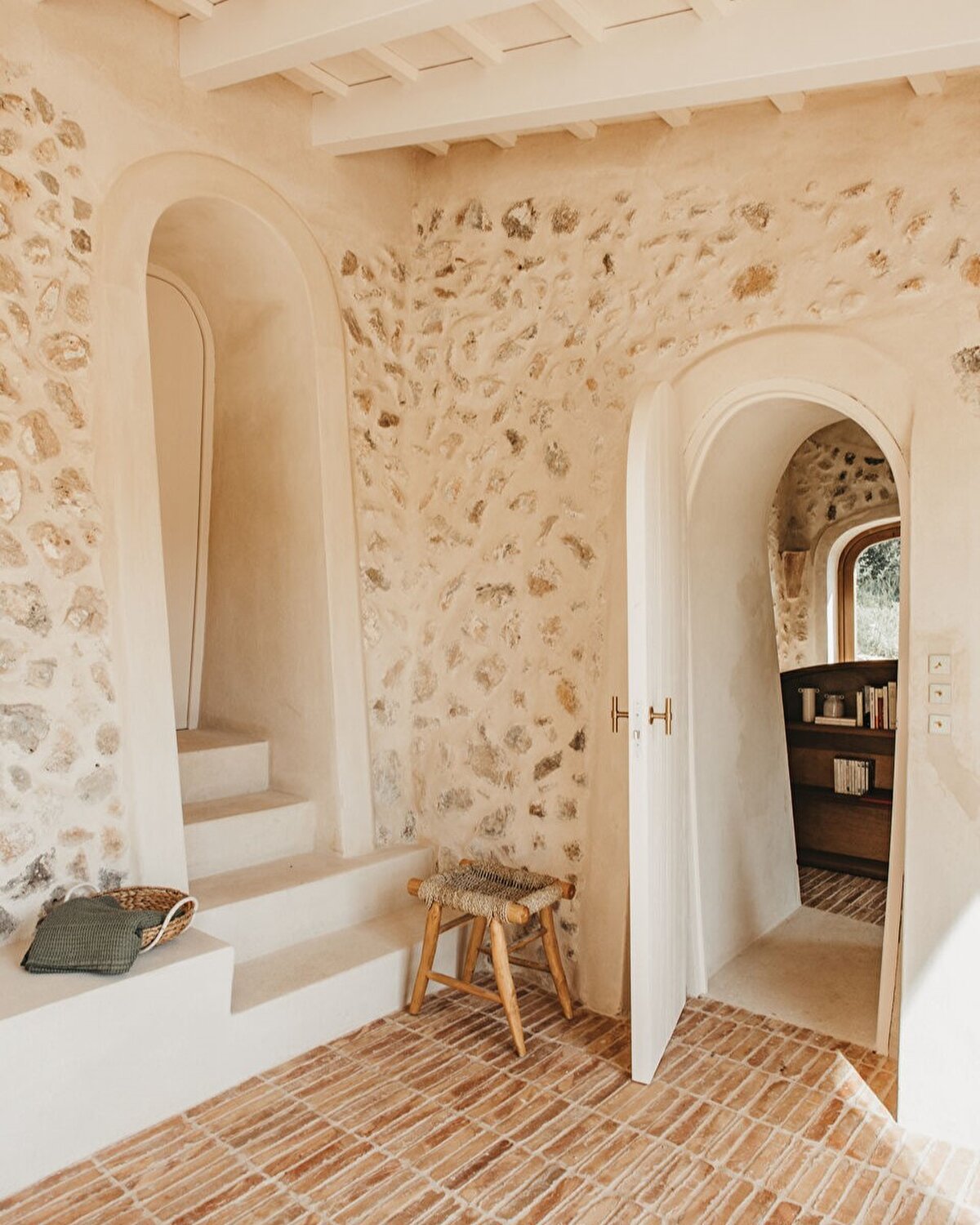 Menorca kırsalında 76 hektarlık bir alana yayılan ve Estancia San José adı verilen bu tatil evi, bir anne ve kızına ait. Dönüşüm sürecinde geleneksel taş ahır, geniş ve aydınlık bir yaşam alanına dönüştürülürken, yatak odaları arka kısımda konumlandırılıyor. Eski çiftlik evinde ise duvarlar kaldırılarak sarı seramiklerle vurgulanan geniş bir mutfak oluşturuluyor. Döner kapılar, doğal ışığı iç mekâna taşıyan yeni açıklıklarla tamamlanıyor.